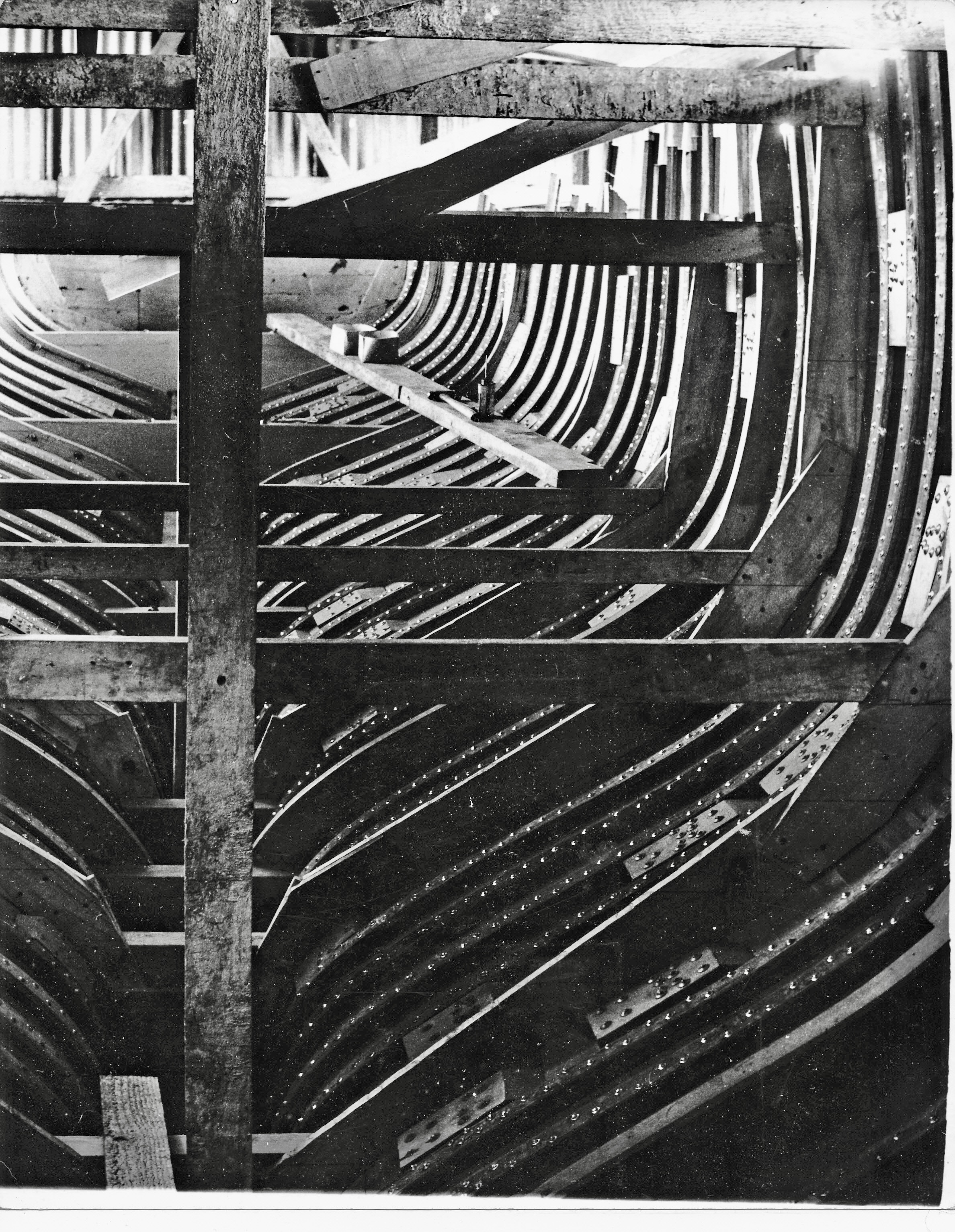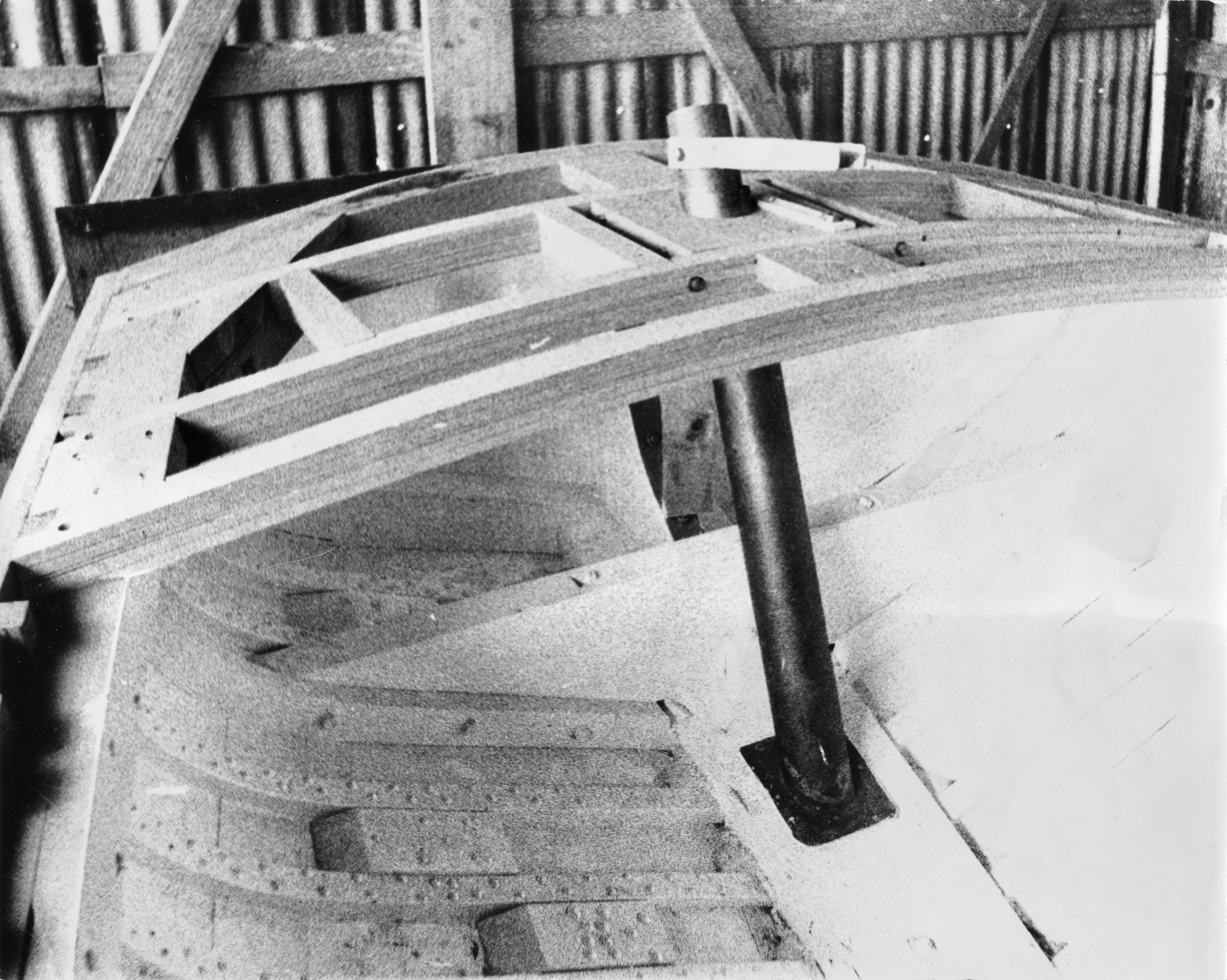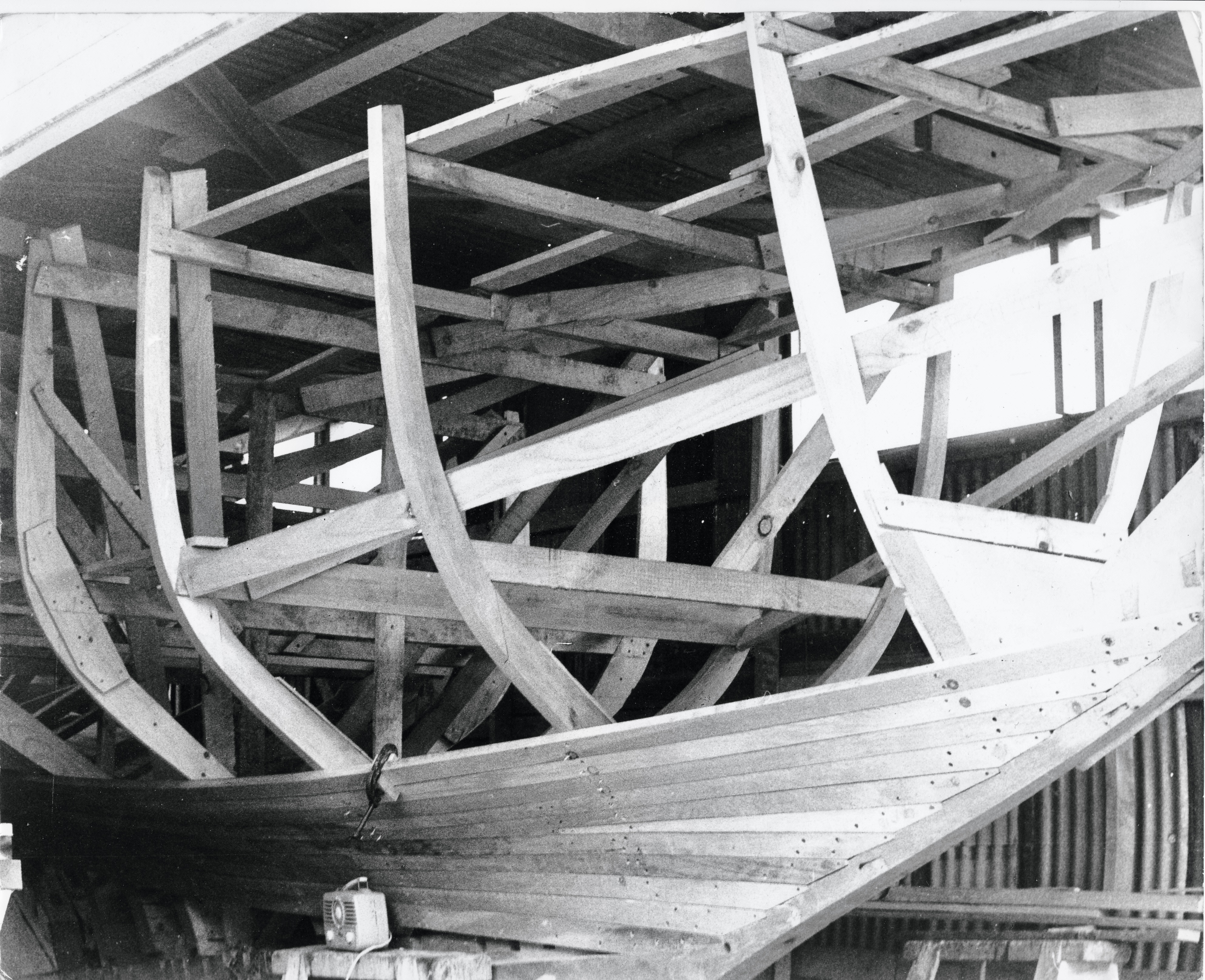 “VECTIS” is 31ft plus bowsprit and 9ft 6in beam displacing seven tons. She is planked with 1¼ inch kauri over bent ribs, with every 4th rib sawn pohutukawa. She is fastened with copper rivets and treated with red lead, the well-tested standard at that time, and has bronze keel bolts. The deck was laid kauri, fore and aft over diagonals, and caulked with cotton and tar. Coamings and bright work are mahogany, with oregon spars.