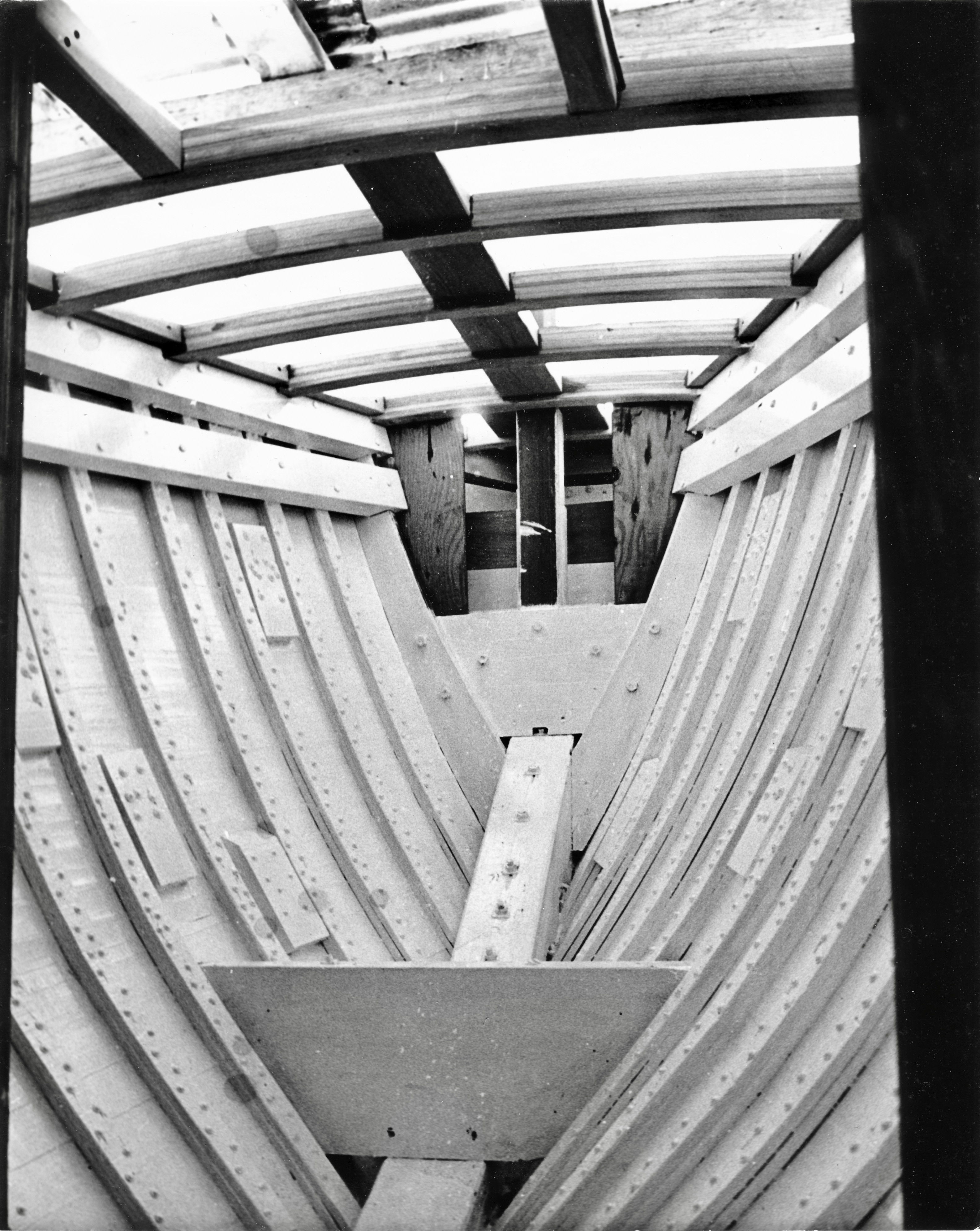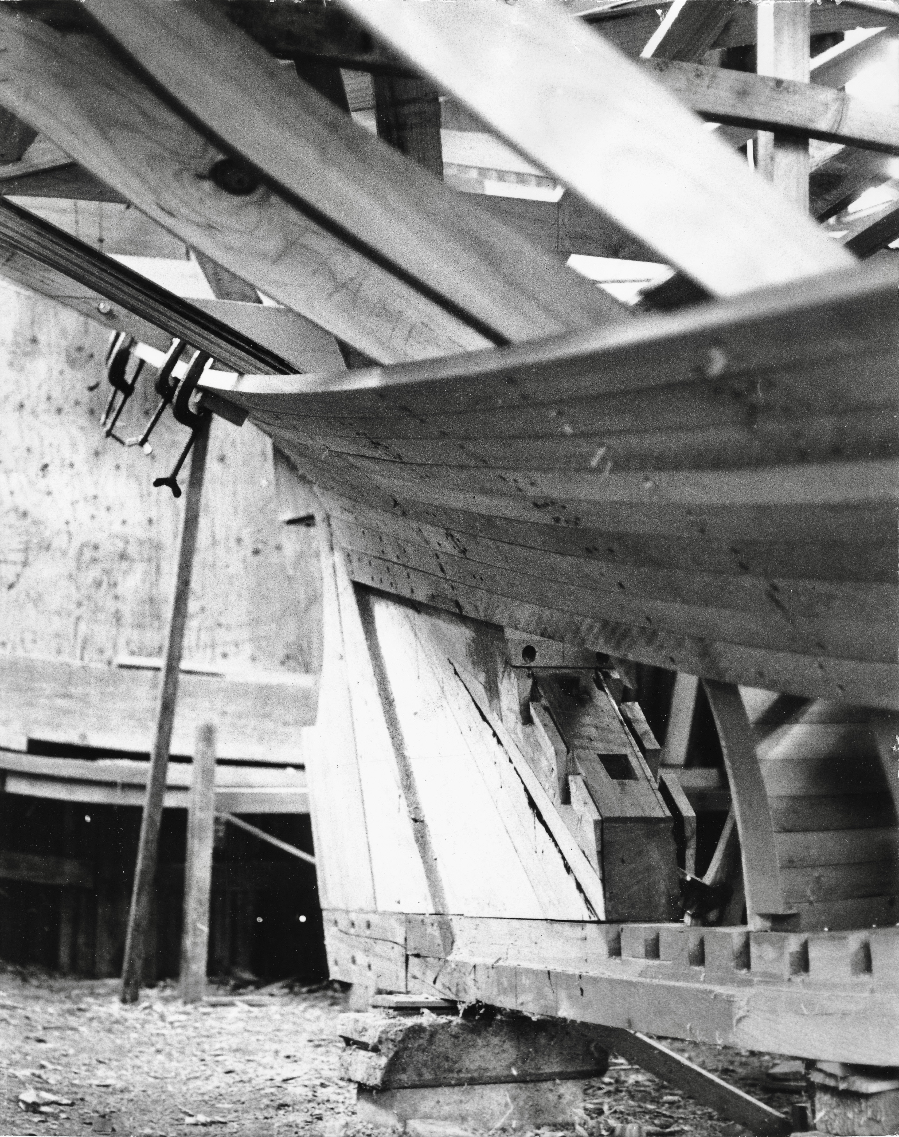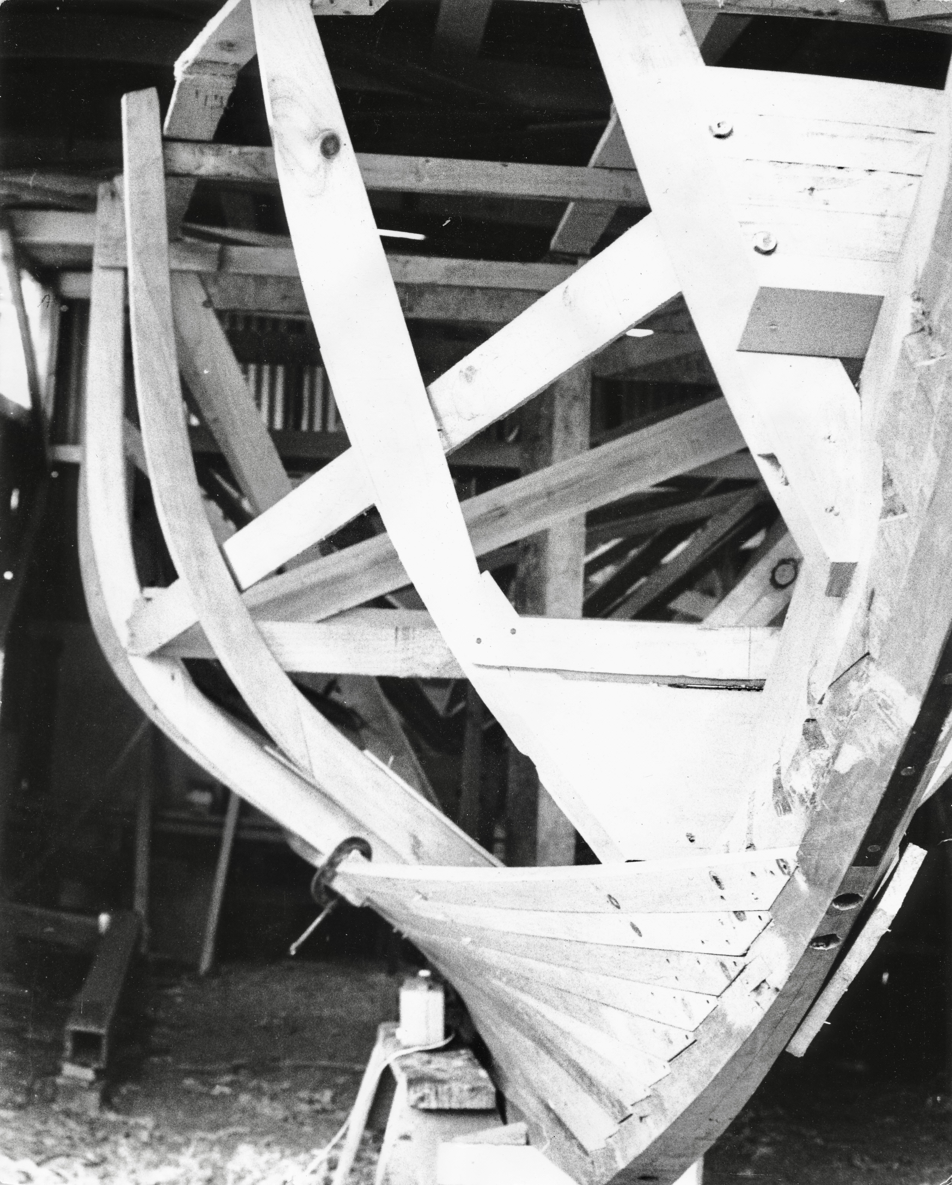 “VECTIS” is 31ft plus bowsprit and 9ft 6in beam displacing seven tons. She is planked with 1¼ inch kauri over bent ribs, with every 4th rib sawn pohutukawa. She is fastened with copper rivets and treated with red lead, the well-tested standard at that time, and has bronze keel bolts. The deck was laid kauri, fore and aft over diagonals, and caulked with cotton and tar. Coamings and bright work are mahogany, with oregon spars.