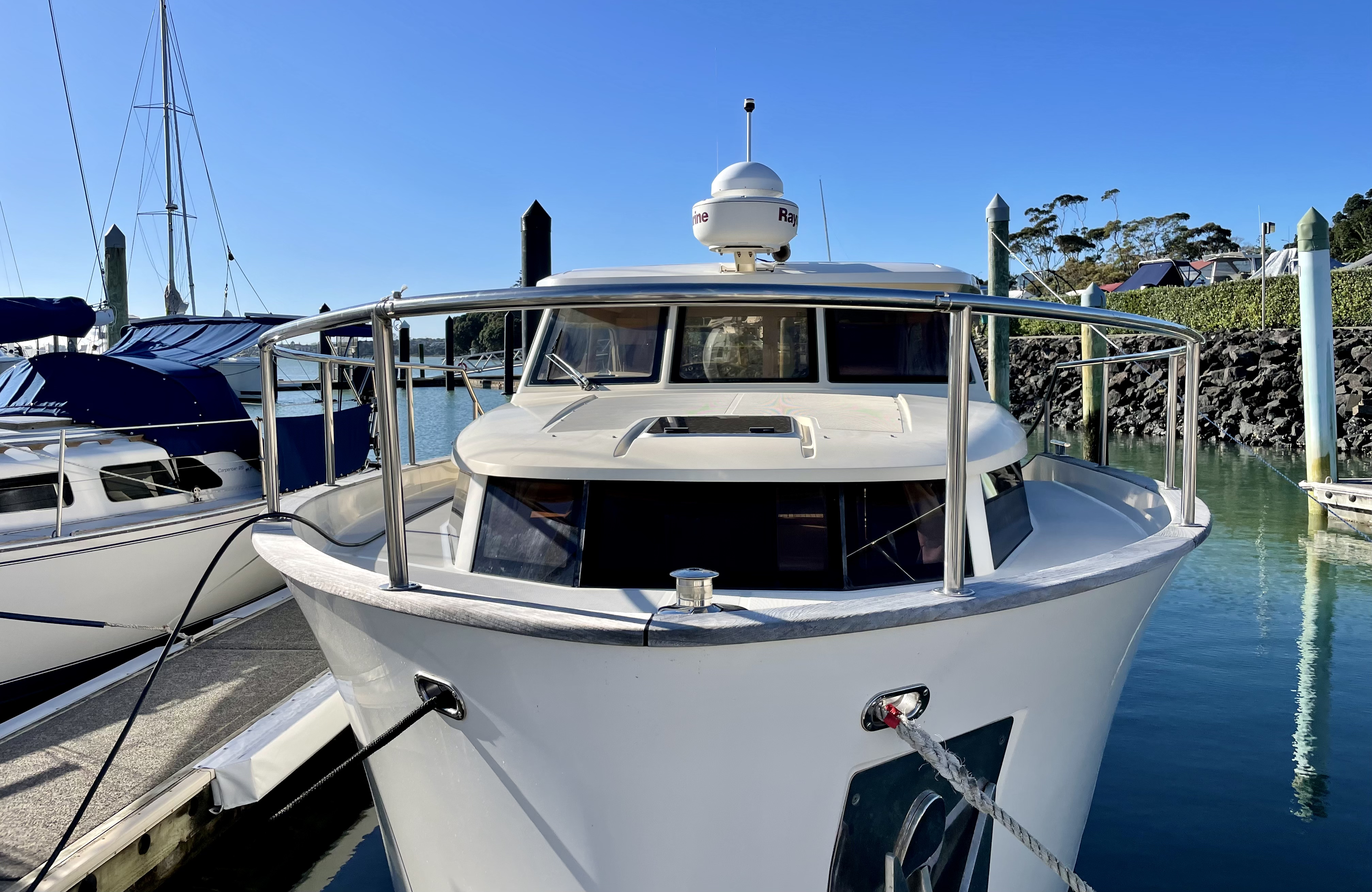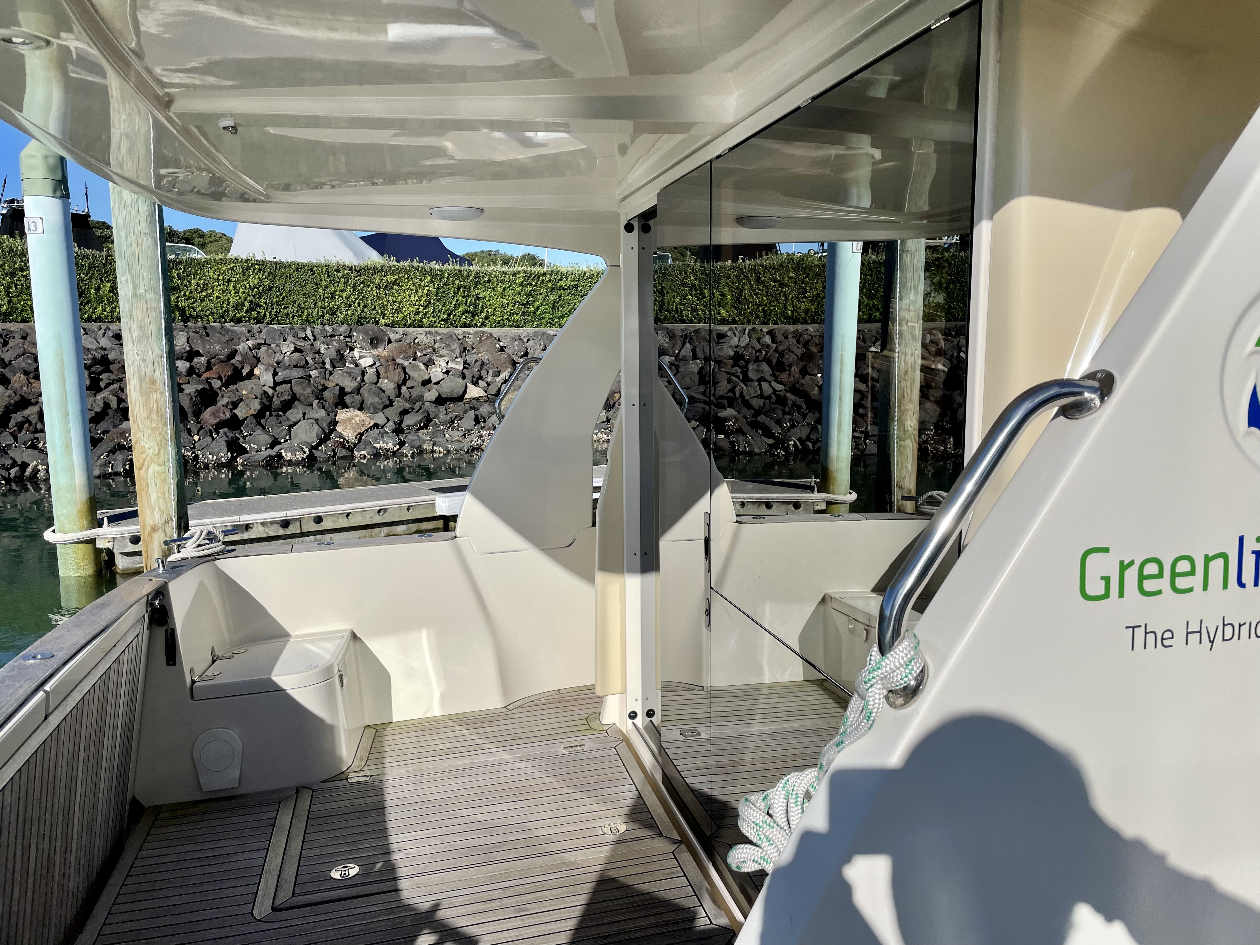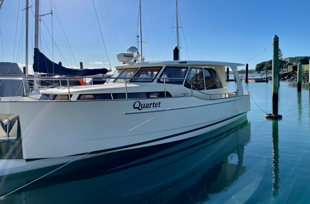 Or more likely if Ardern has her way ………….Quartet is a ‘Greenline Hybrid’ – but just what the set up is I do not know. But it is a lot of boat for its size (the berth is 10.5m) and seems to include most things – wide walk around decks, large covered cockpit, drop down stern / duck-board, inbuilt solar panels etc. And I’m sure I’ll cop some flak – but its visually not that offensive, at least to me 🙂