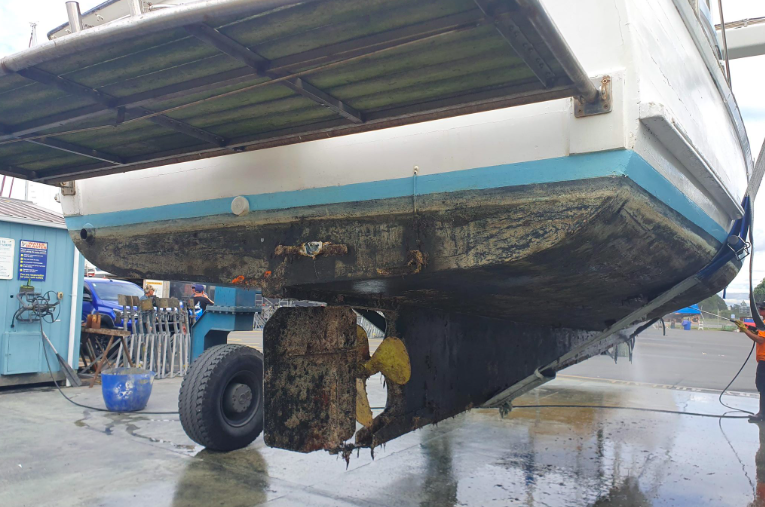 While mooching around the yard at Hobsonville Marina today I spotted the launch – Oranoa out for some TLC. We do not see her out and about much and WW only knows a little from her very early days.
