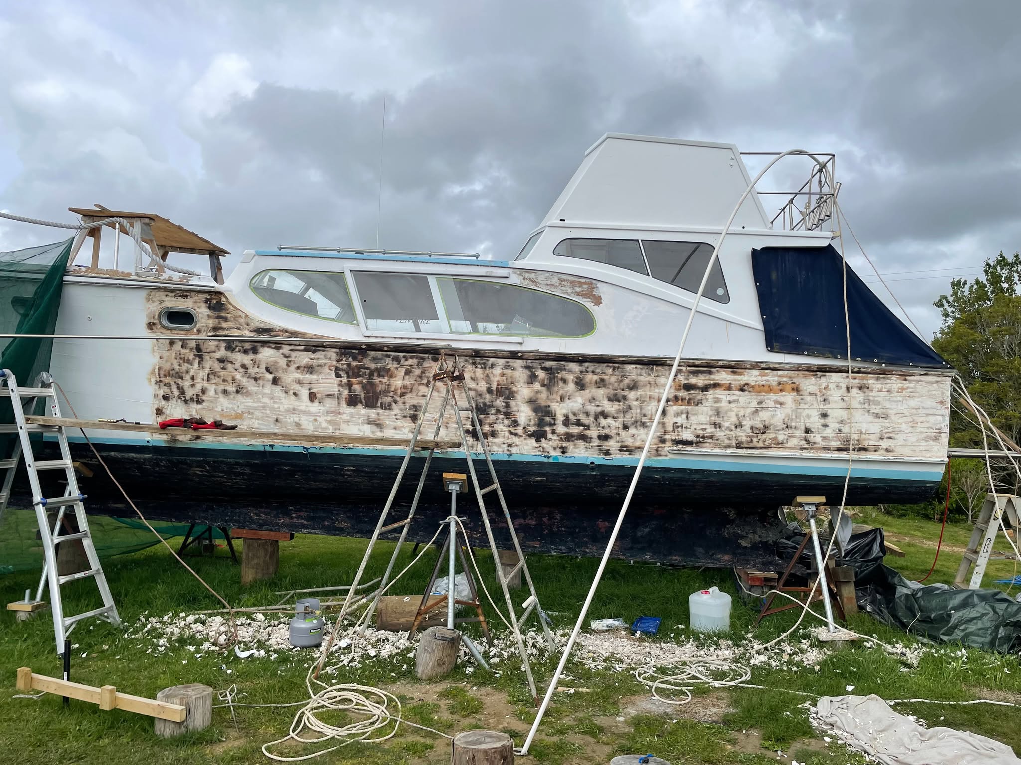 When I took my launch back to ‘bare wood’ a few years ago I was paranoid about getting too close to the kauri and scorching the surface, seems Jeff didn’t share my view 🙂 The finished repaint looks ace – we done.