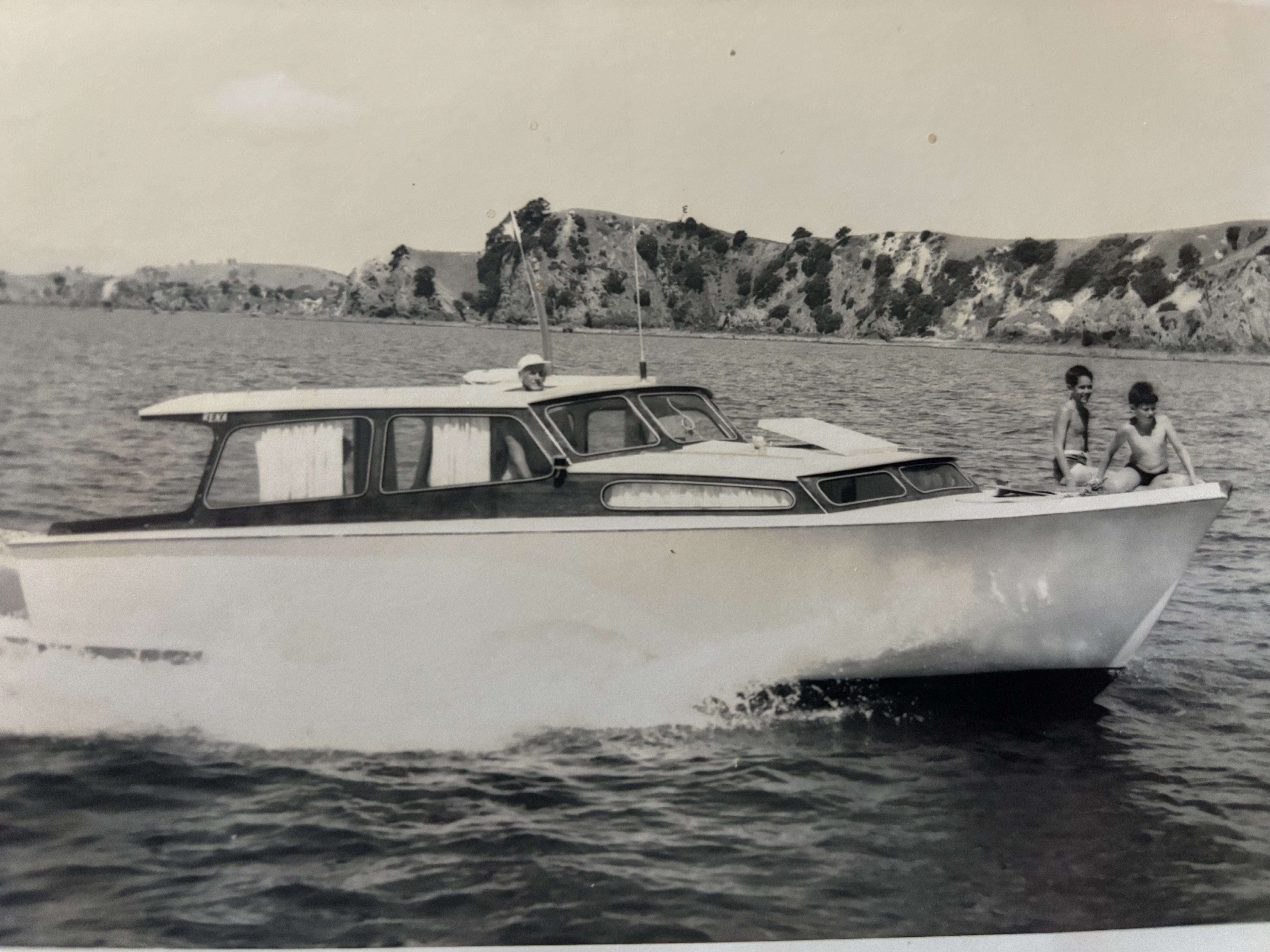 The launch was built c.1964 by Jim McKay in his shed in Sunnybrae road, Takapuna (Archers Rd. end). The photo is dated 1967 and RENA was owned at the time by Tom McCauley.