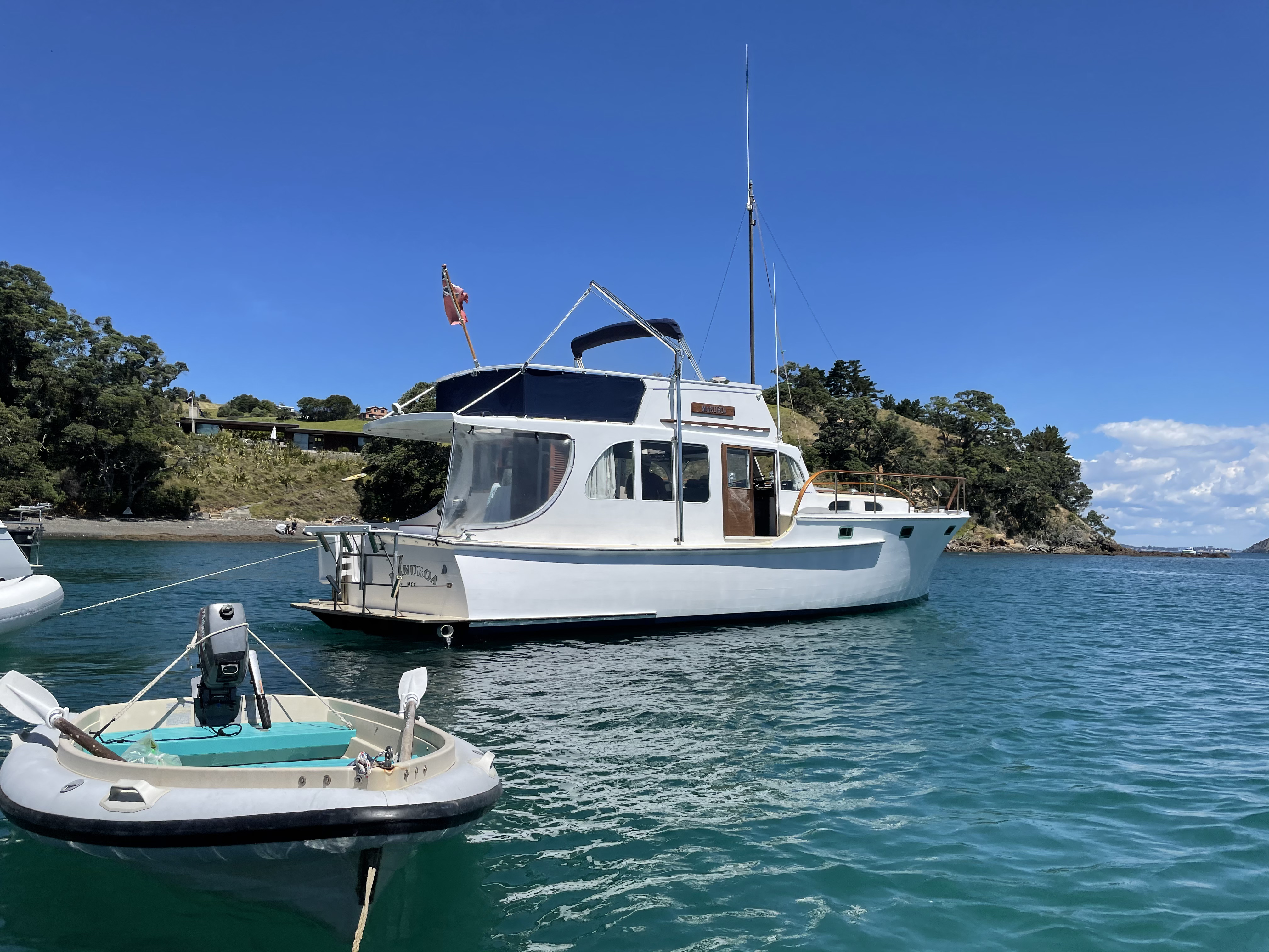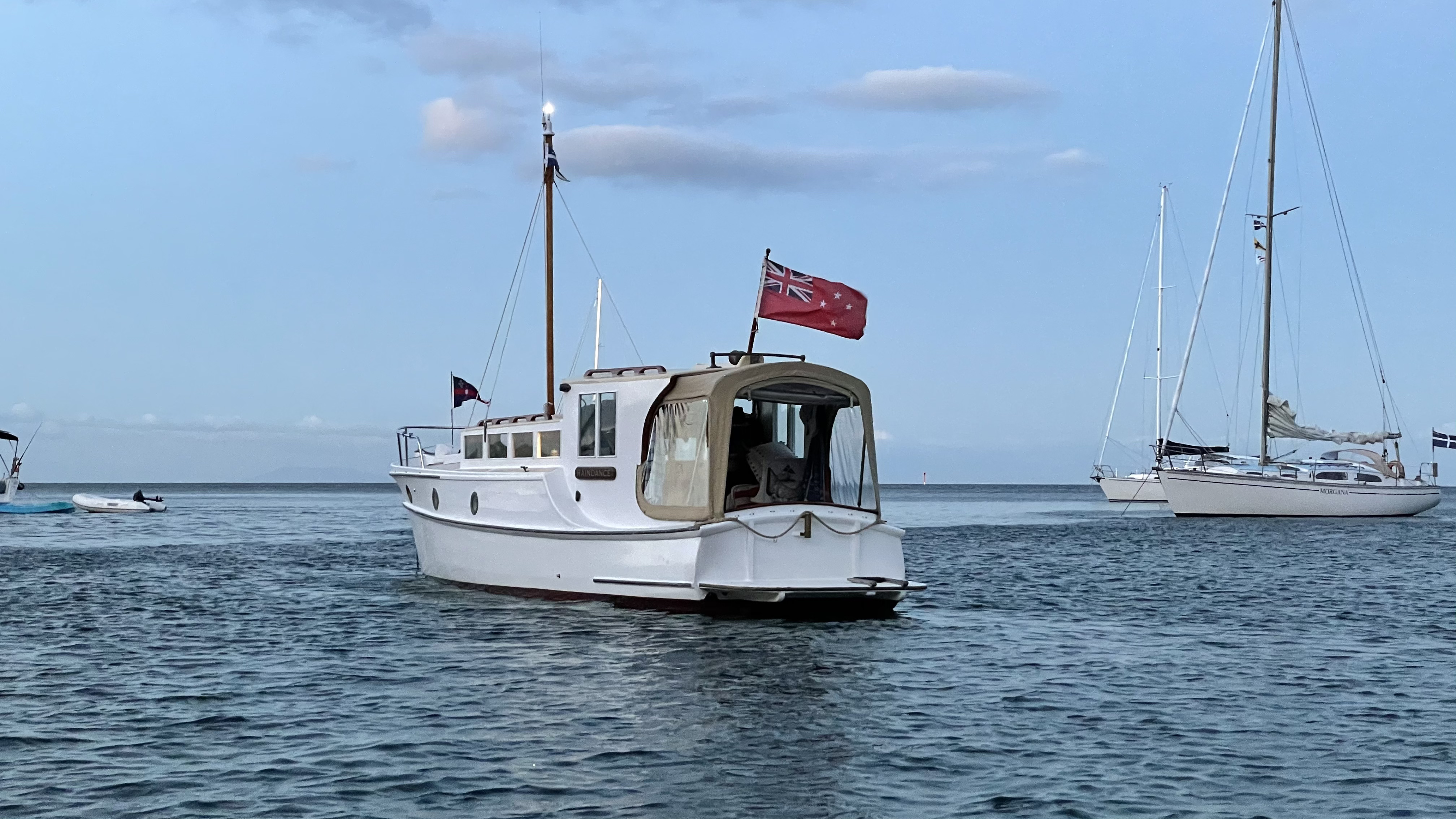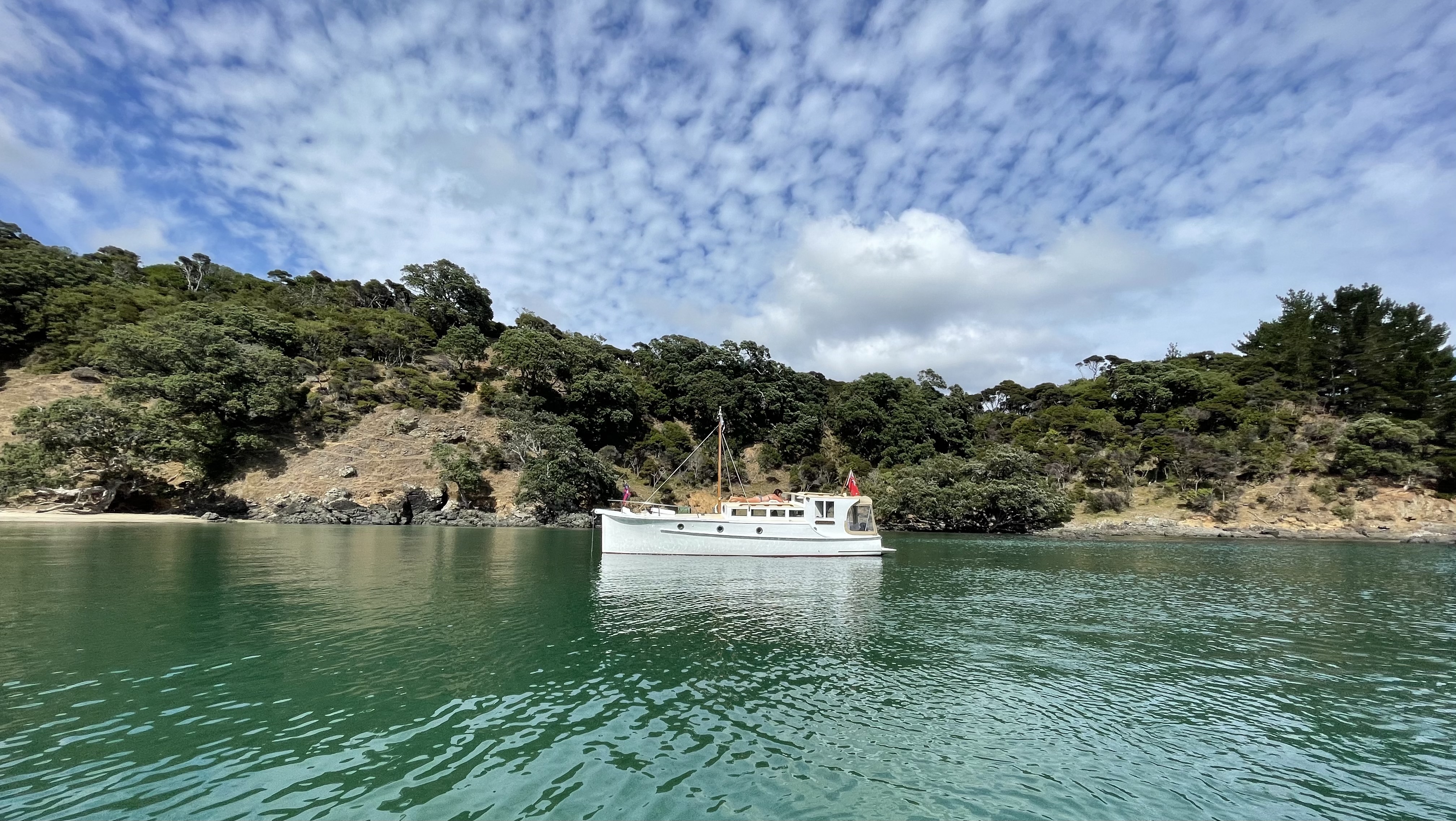 Recently we helped find a new owner for the 28’ John Brooke designed, Walter Deeming built launch – SEAFARER and she is now moored at the island. Photos above of the delivery voyage, the bacon and egg pie is a masterpiece, made by the new owner’s father. More photos of the launch here https://waitematawoodys.com/2025/04/09/classic-wooden-launch-seafarer-a-peek-down-below-4sale/