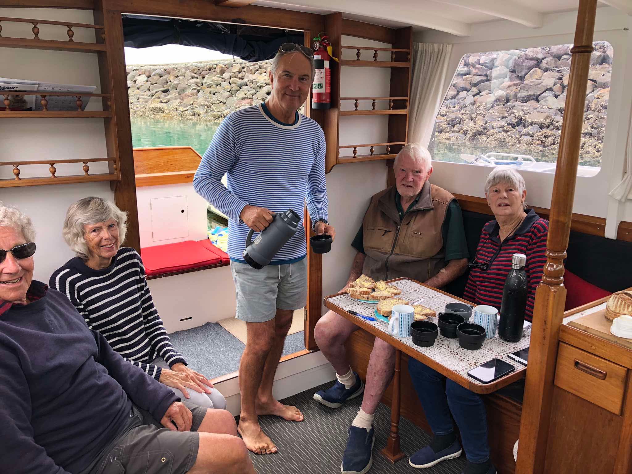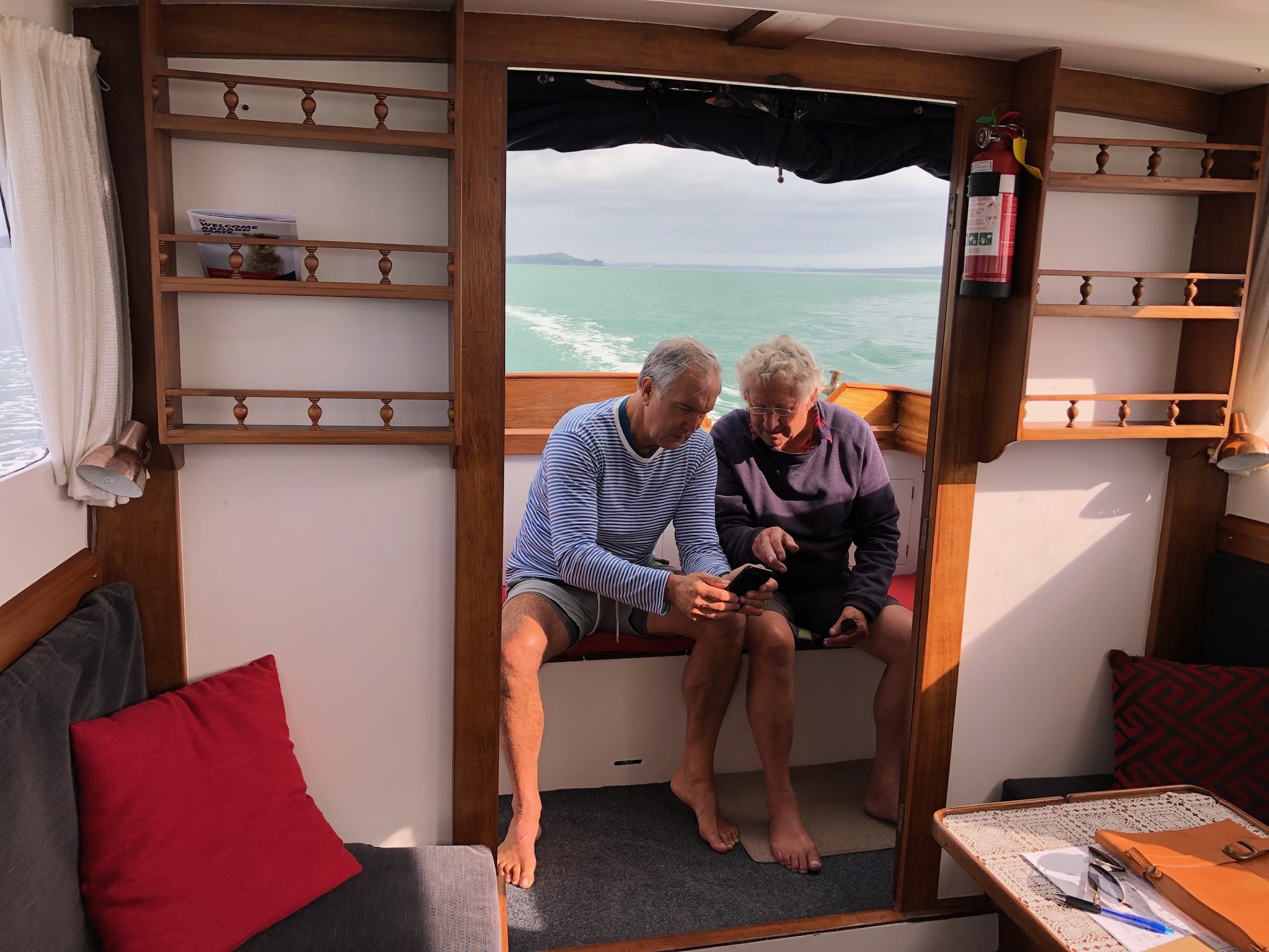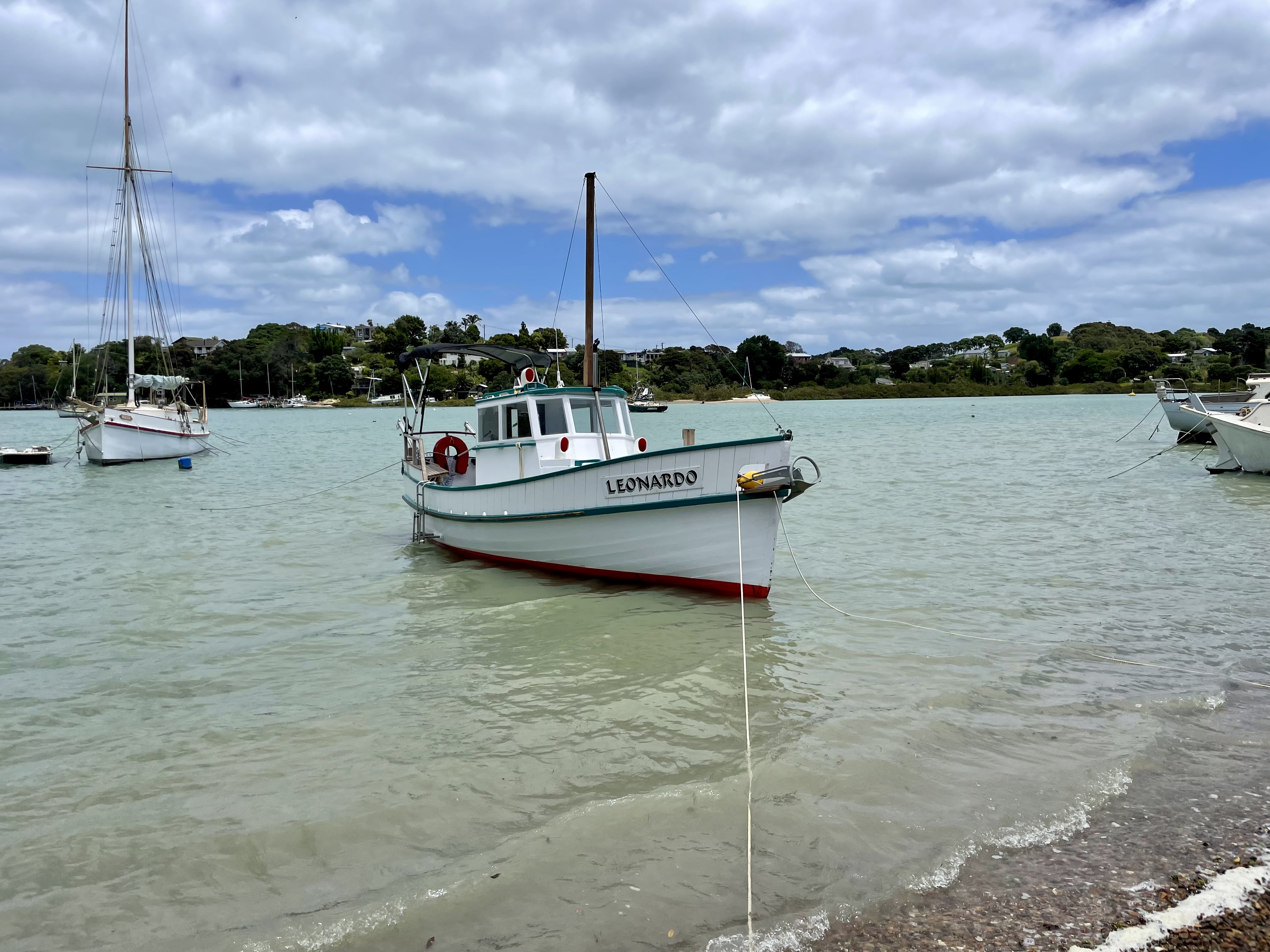 Recently we helped find a new owner for the 28’ John Brooke designed, Walter Deeming built launch – SEAFARER and she is now moored at the island. Photos above of the delivery voyage, the bacon and egg pie is a masterpiece, made by the new owner’s father. More photos of the launch here https://waitematawoodys.com/2025/04/09/classic-wooden-launch-seafarer-a-peek-down-below-4sale/