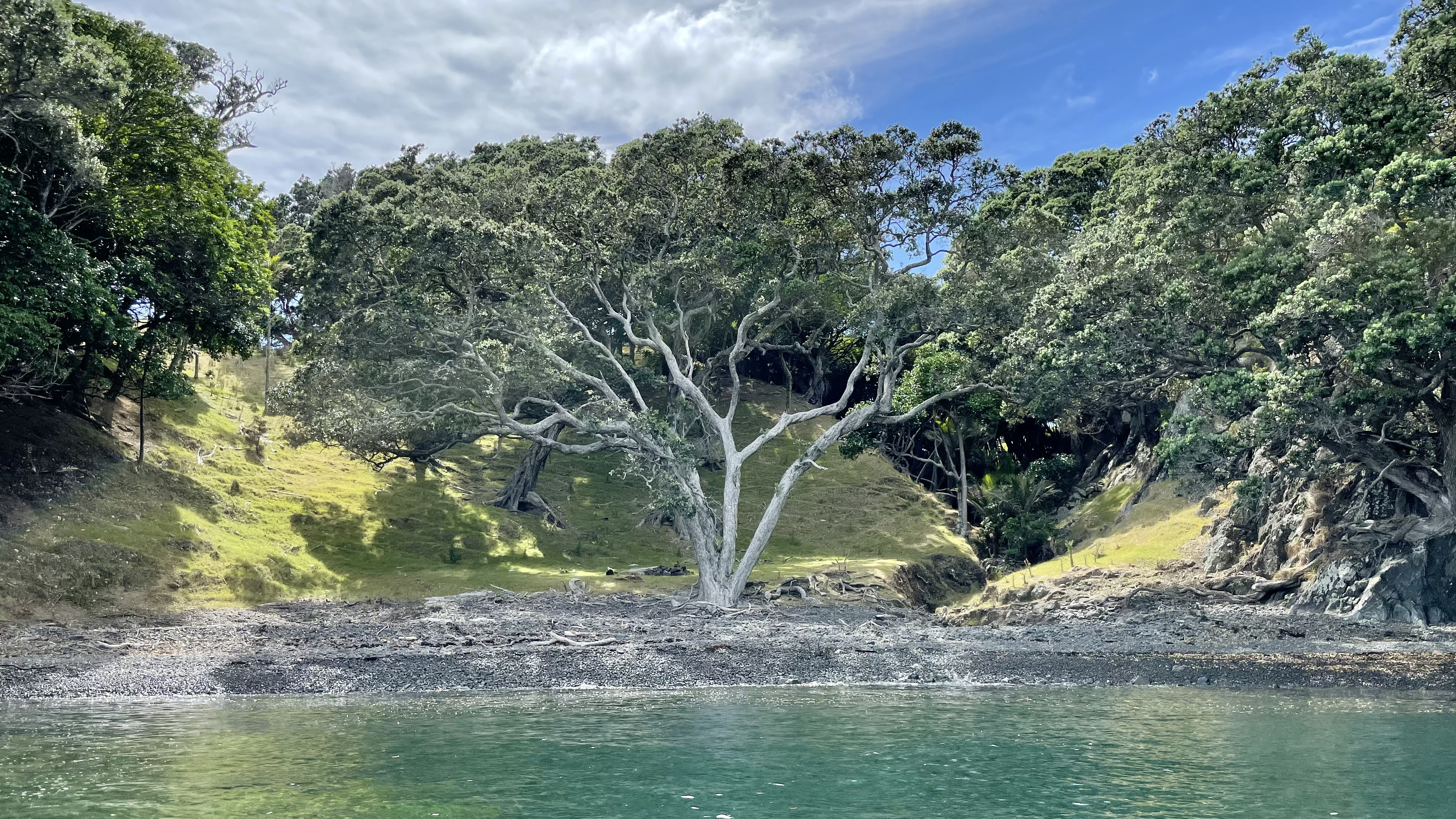 Rakino Island (West Bay on left – Woody Bay on right)Raindance & Morgana