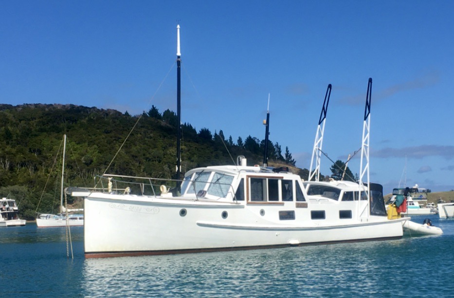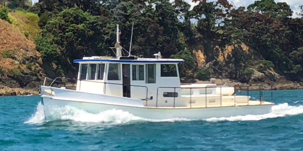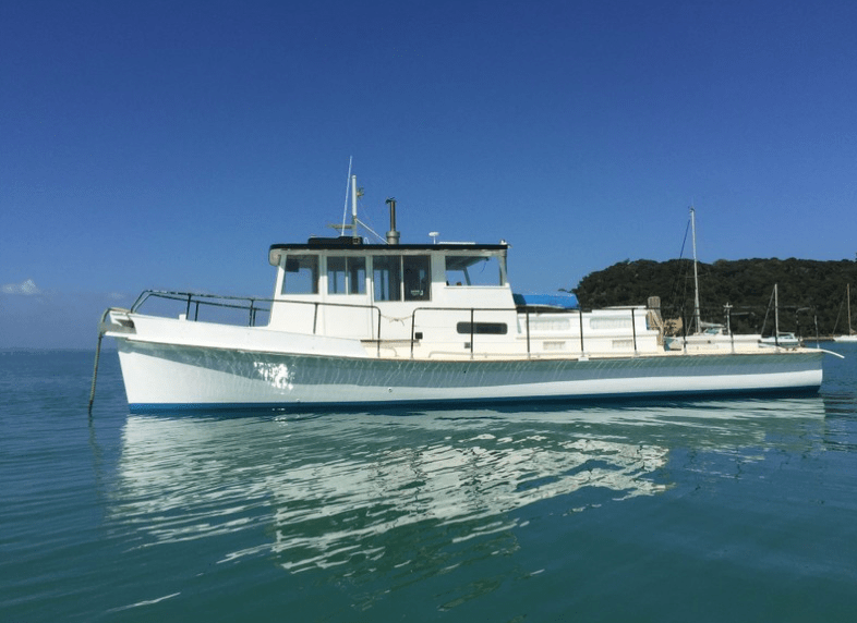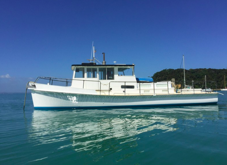 Mystery Workboat Conversion According to her tme listing (thanks Ian McDonald) the above woody is – 44’ in length, built of kauri, powered by a 1978 Detroit 150hp diesel and calls Waiheke Island home. And that woodys is all we know.