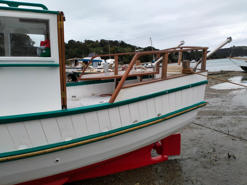 Fast forward 4 years and Grant Edwards, owner of the launch Phyllis M reports in that Leonardo had been purchased by a fellow Waiheke Island gent named Lance Peterson. Lance had the boat transported to Auckland and started an extensive period of repair and restoration as she was in very poor health. Included in the refit was a replacement engine, another Ford, 2 cylinder this time, and the additional of a set of bilge keels for ‘drying out.