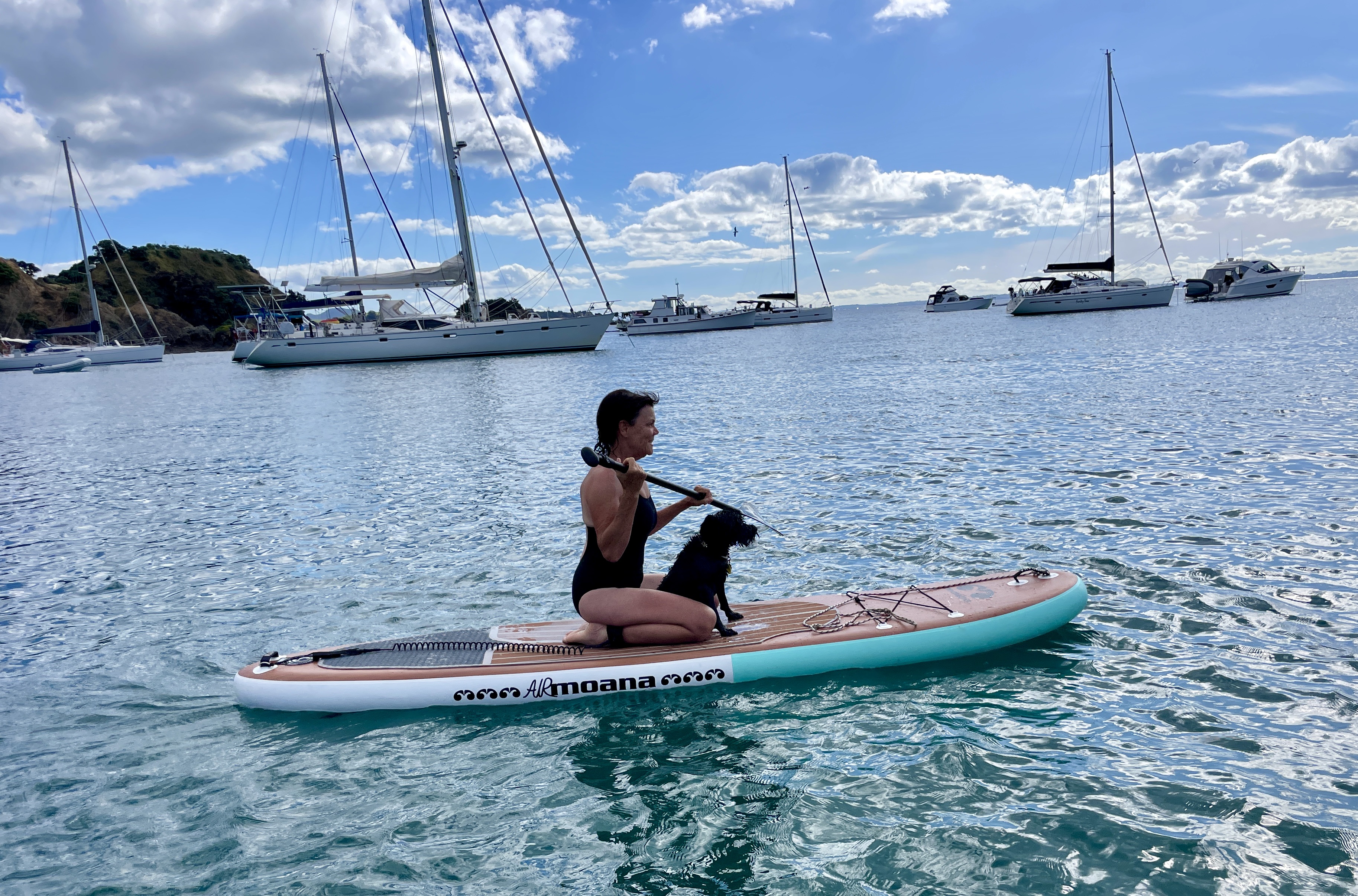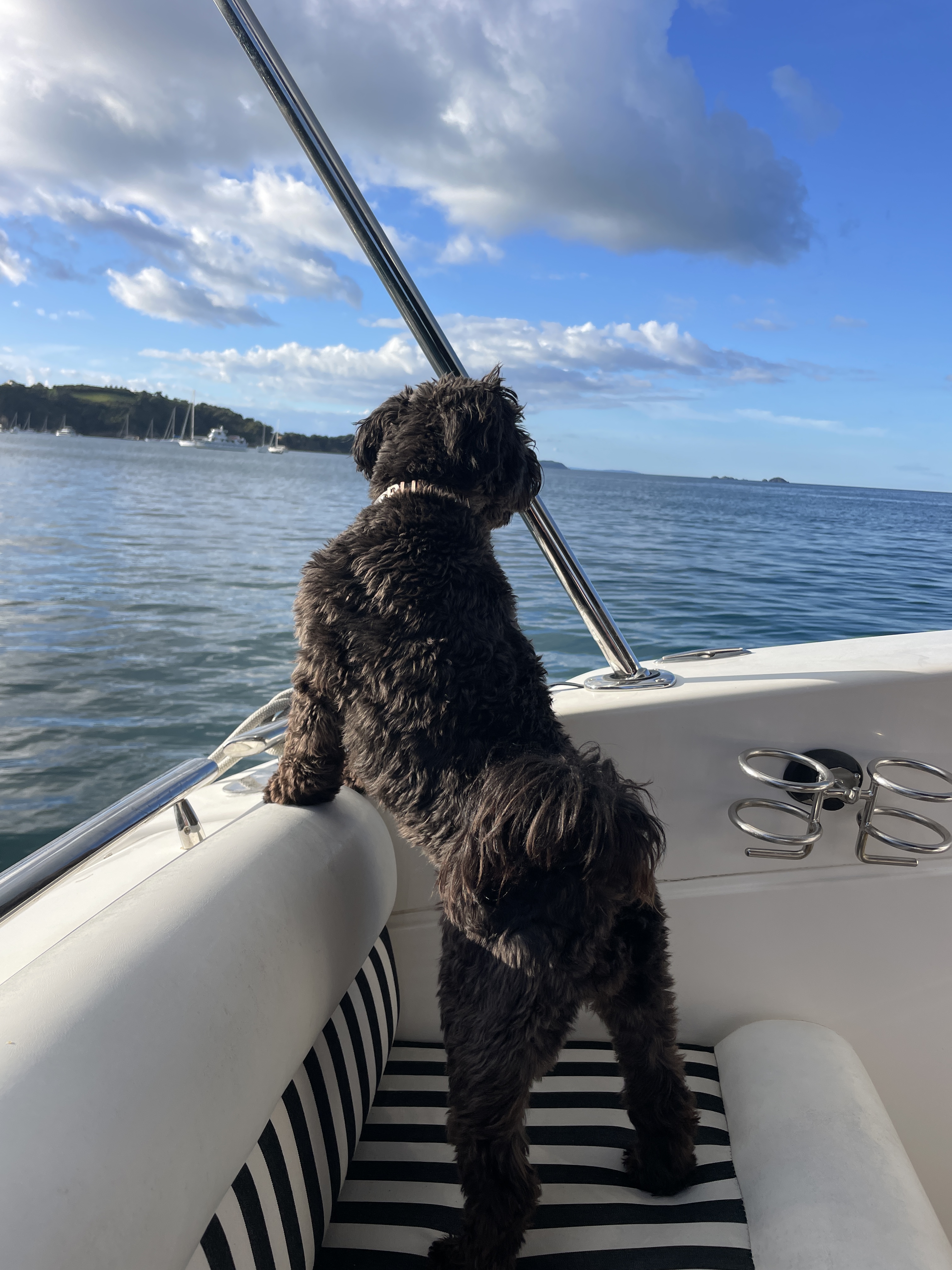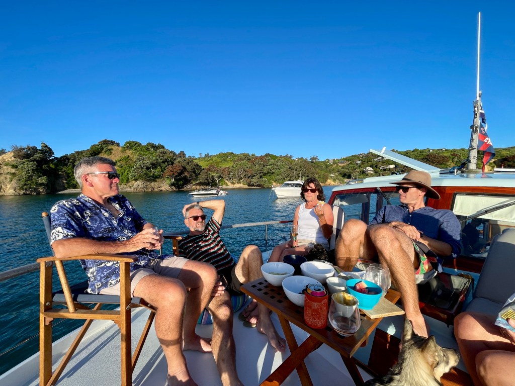 Day Eight a lazy day exploring WAIHEKE and moved to Hekerua Bay for the evening. I crossed the dark side and had drinks onboard another friends new non wood boat – putting aside the construction it was very grand (ice maker + water maker – 200L a day) our pup was very taken with the ability to do 360° laps of the boat.