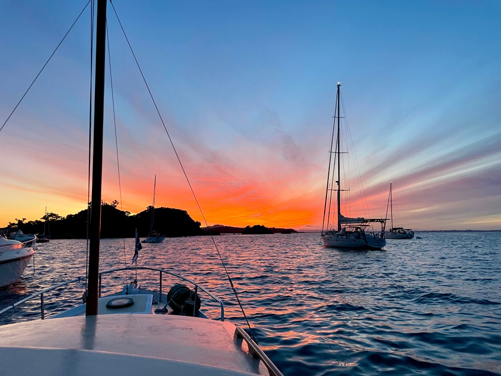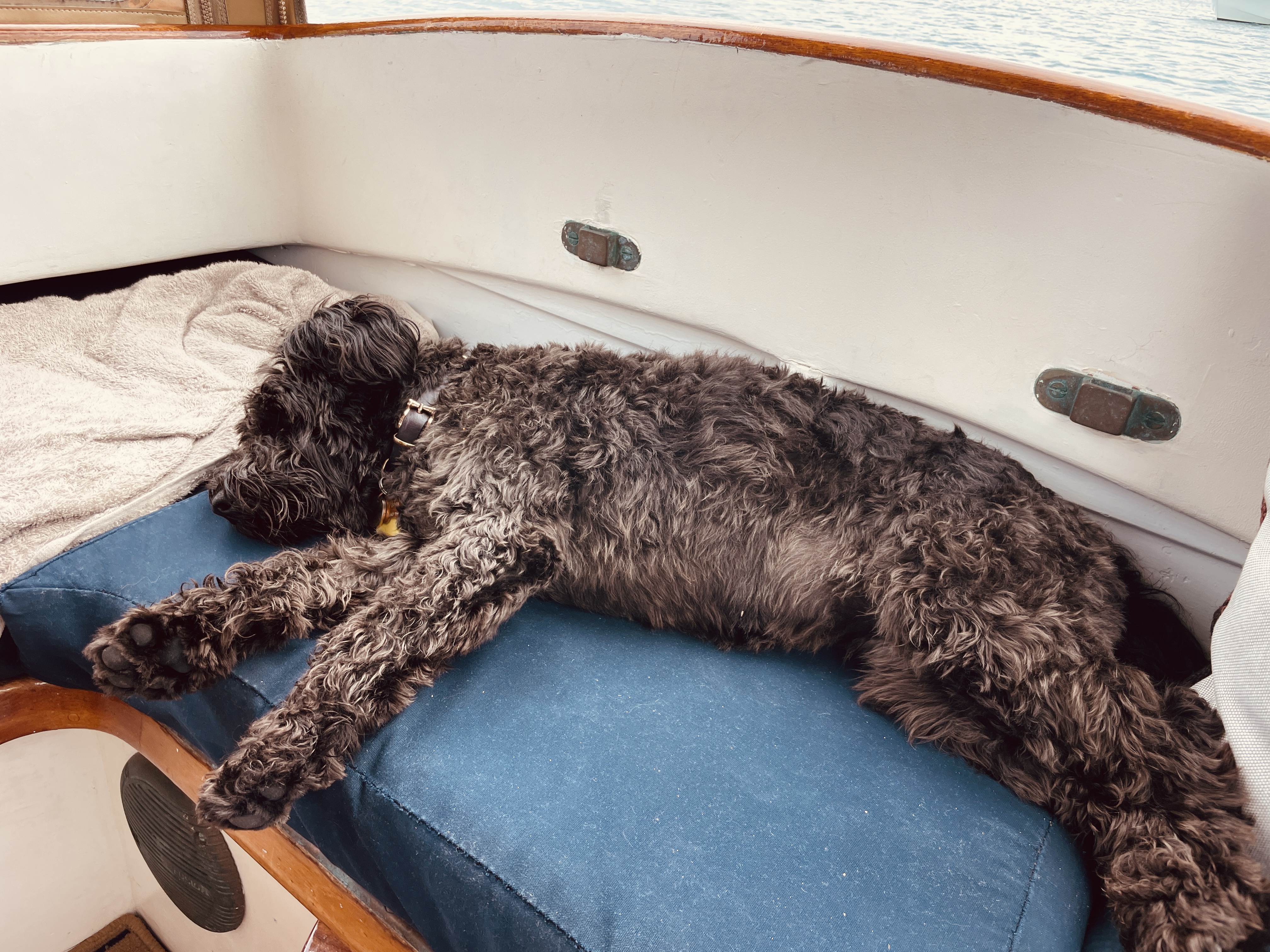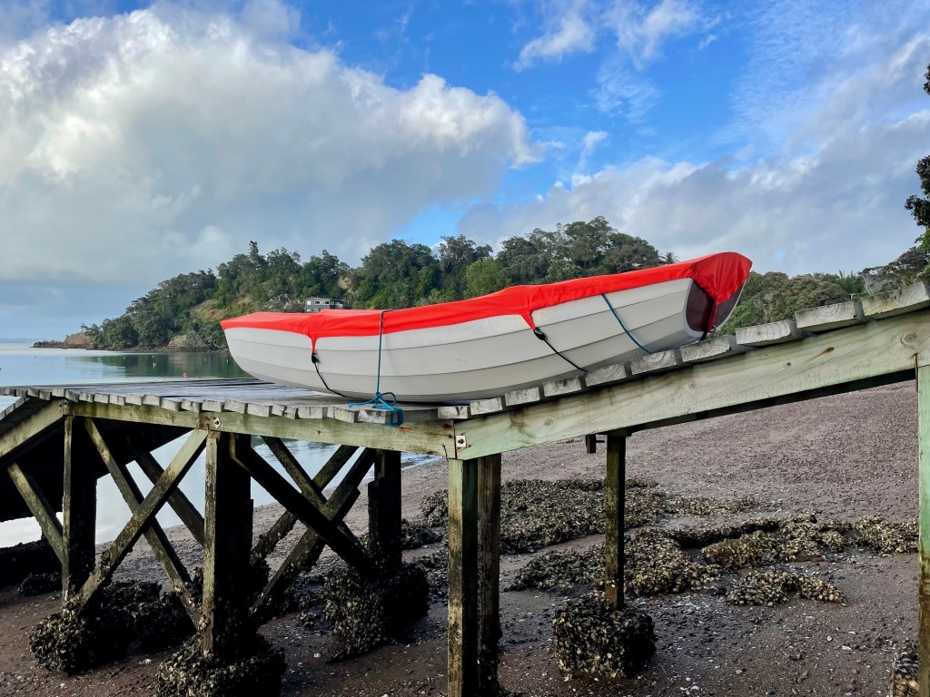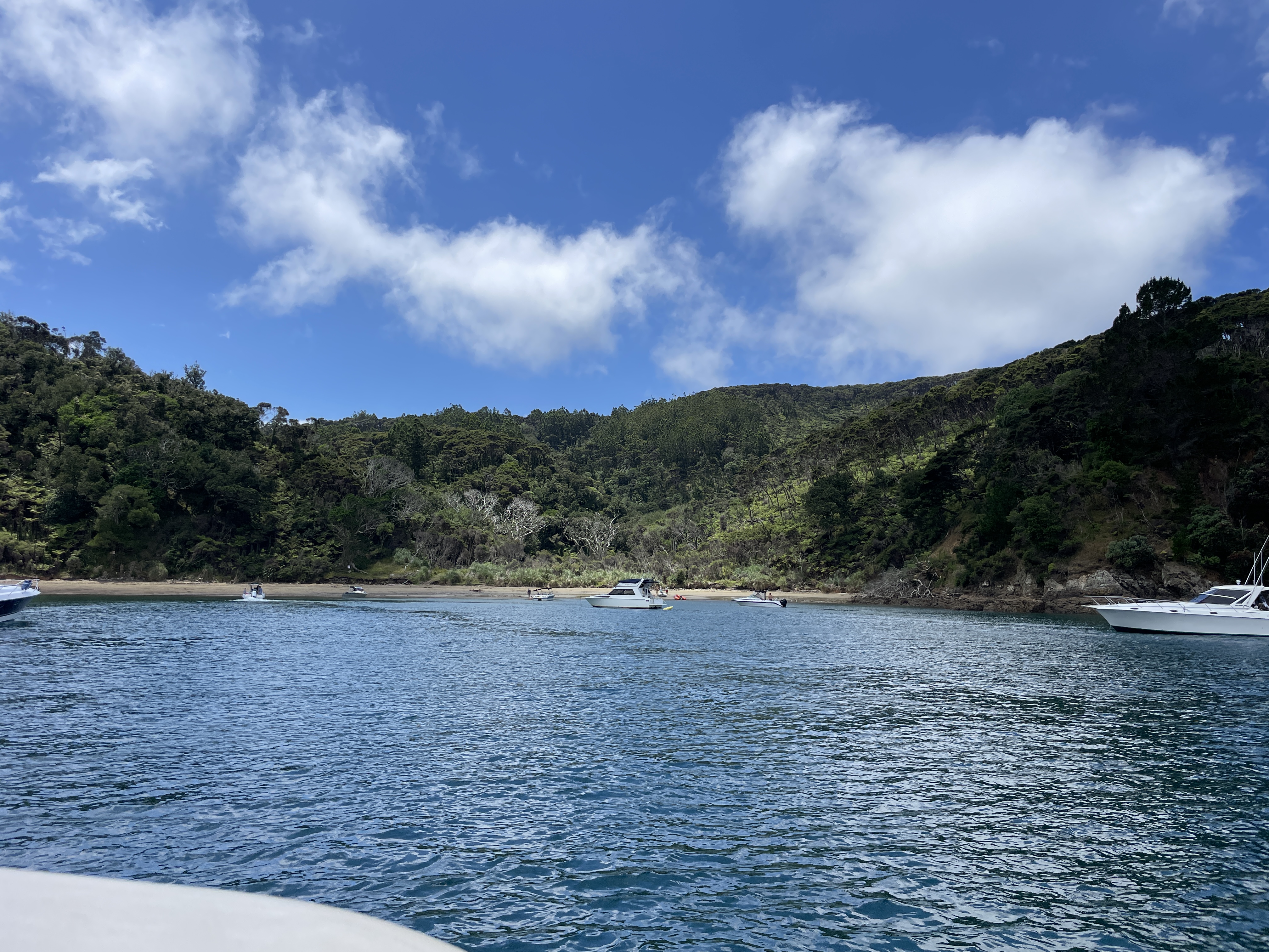 Day Eight a lazy day exploring WAIHEKE and moved to Hekerua Bay for the evening. I crossed the dark side and had drinks onboard another friends new non wood boat – putting aside the construction it was very grand (ice maker + water maker – 200L a day) our pup was very taken with the ability to do 360° laps of the boat.