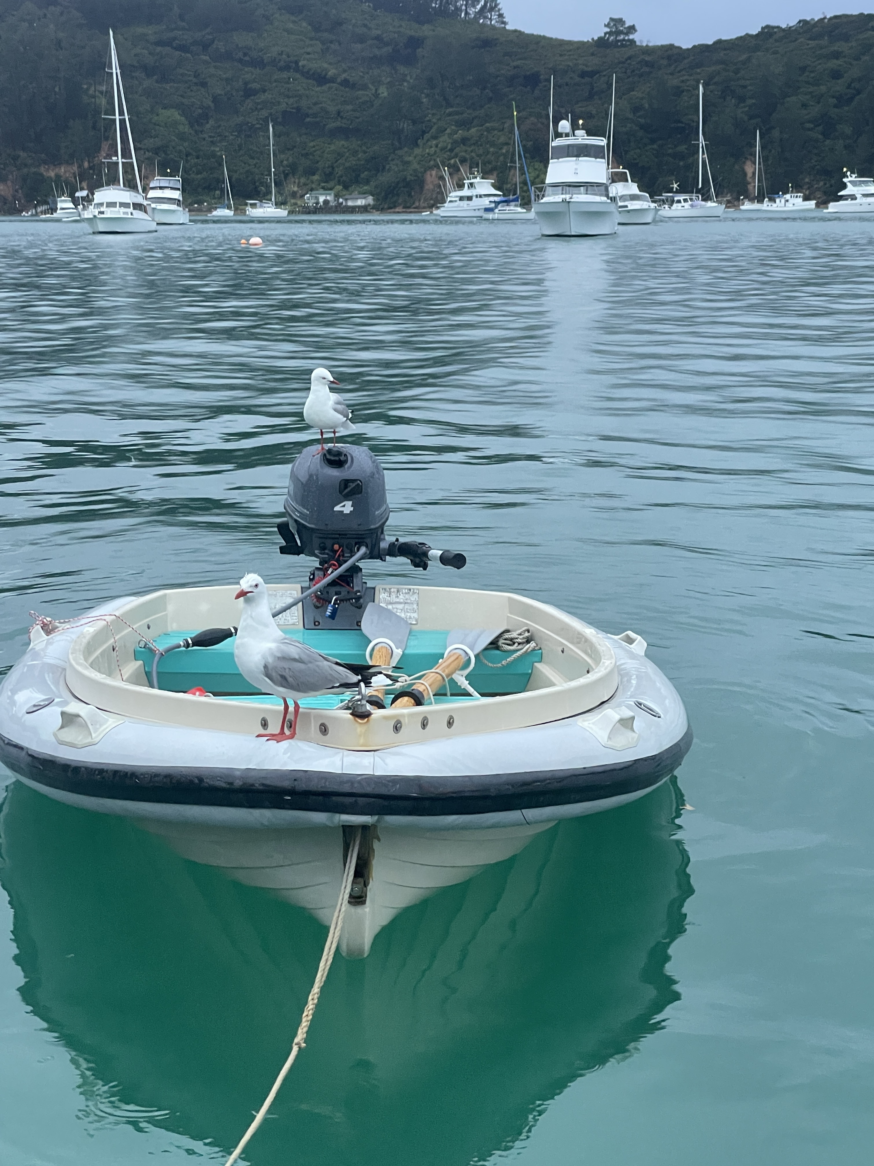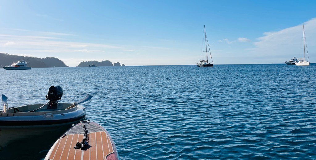 Stunning weather afloat, photo below of Raindance in Garden Cove, Waiheke Island – we sneaked in before the fizz boats and SeaLegs arrived.