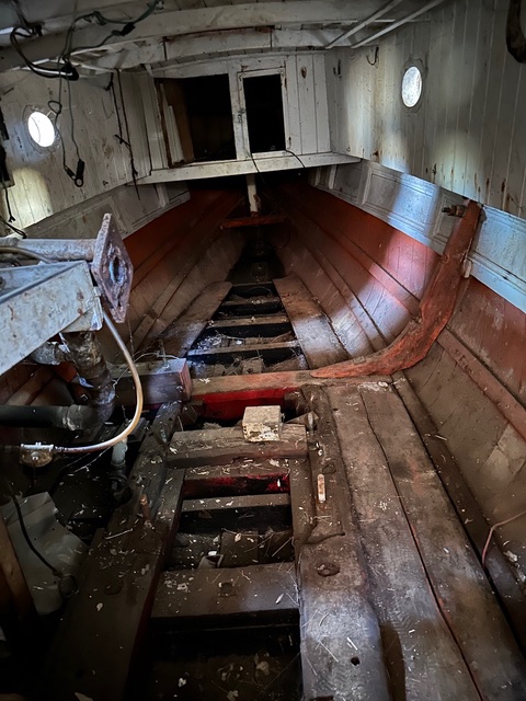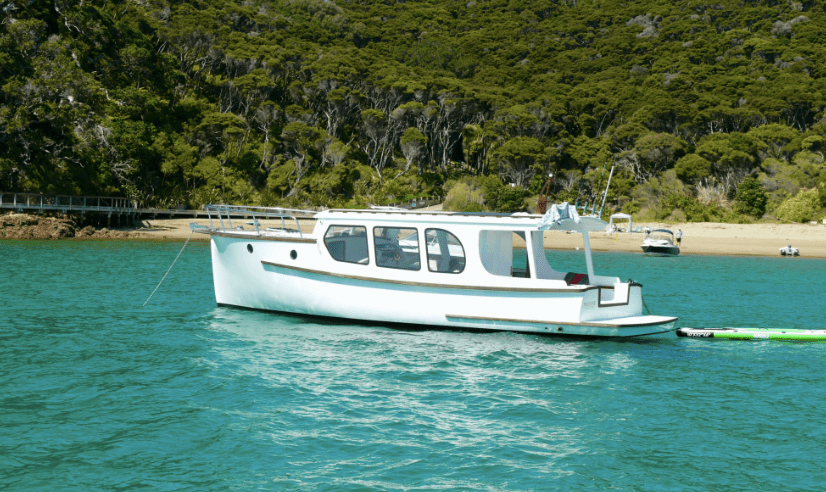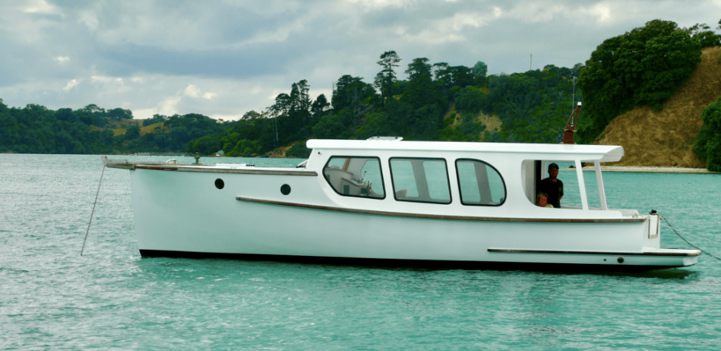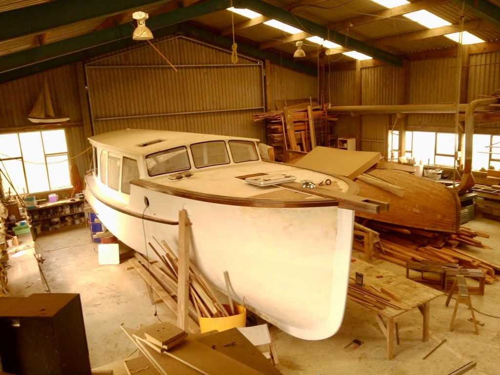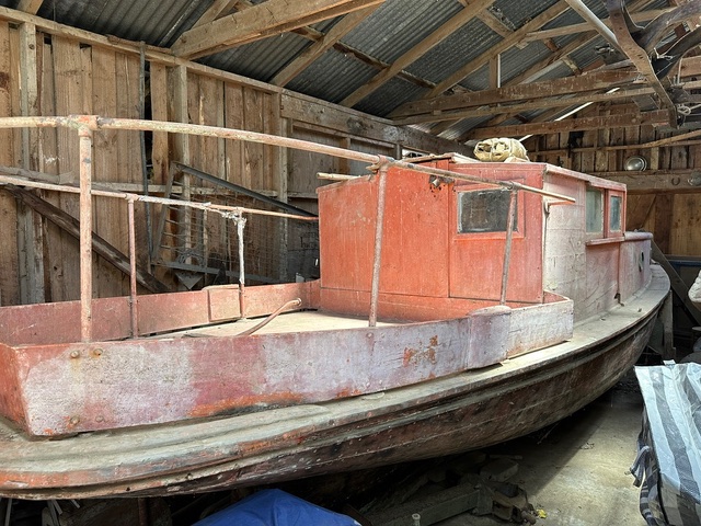 “Well I went to inspect the Waione a few days ago and she’s securely parked in a shed and you know it’s been well covered, out of the water for a long period I think 30 years and the paint basically has all been stripped off so it’s a bare hull. Construction is kauri and seems to be double skinned, the inner skin is diagonal and the outer planking is end to end or a longitude carvel arrangement, she has a long keel and a counter stern, quite a small volume boat. I think built by Lanes in Picton, so she would’ve been designed for the Marlborough Sounds before there was much access via road so would’ve been designed to to operate pretty economically with a small 5 to 10 hp engine, some sail arrangement plus large oars or sweeps as they called them in those days to propel the boat and manoeuvre it should the engine fail or docking or whatever. Some of the first engines didn’t even have a reverse gear so you were up against it a bit for manoeuvrability, but it would’ve been a very easily driven boat being quite narrow and very fuel economic and quite fast for the time. That sort of a classic early 20th century design with tram cab arrangement in the higher part of the cabin and then a curved front to the the cabin not a lot of room inside it but a very sweet little boat and seems to be in reasonably sound condition. And I would say a relatively easy restoration as far as restorations go, a little bit of dry rot on the cabin top and things around some of the work around the hatch at the companion way probably a little bit not keeping with the times made of not solid timber, but overall it’s amazingly original and so I think it would be a very worthwhile and enjoyable project for anyone who who was keen to take something of that nature on. The caulking that would all need to be redone, it’ll all need to be re-caulked and primed and painted and possibly refastened, no doubt and just a good going over really, but there didn’t appear to be any worm in the keel or or anything. The propeller shaft, propeller and rudder are all in place. The oval portholes and the fore cabin were still serviceable and able to be to be restored to their former glory I would say and it’ll be a lovely little craft once it was operating again and quite practical and useful for you in sheltered waters so I would recommend anyone that was interested in that sort of boat and had the desire to keep a little bit of our maritime history going would be well worth a look at.”
