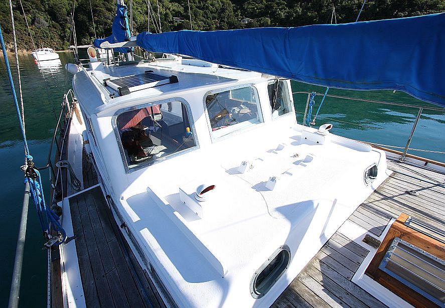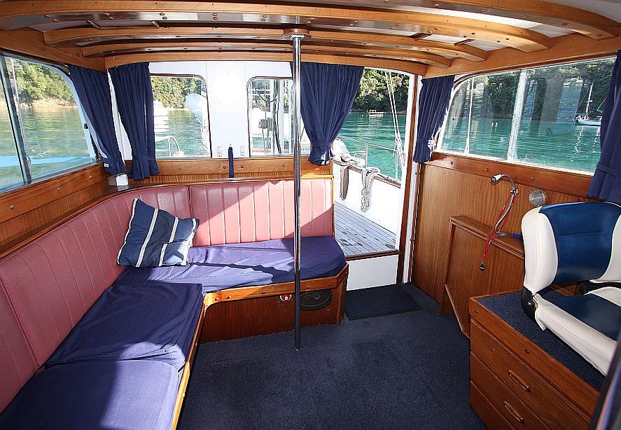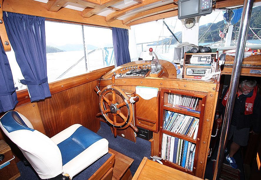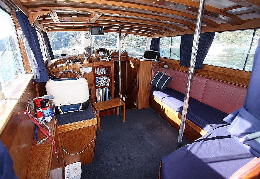 After checking through the archives in the Vining Marine Office Phil came up with a listing from 2009 when they sold her for Paul Robinson to John Mansell. The 2020 listing is from when John listed her (refer below) .. he went on to sell her and now owns the well known Auckland yacht Trojan Eagle. You will see from the listings that she originally had wheel steering inside & out .. the outer wheel was removed at some stage.”
