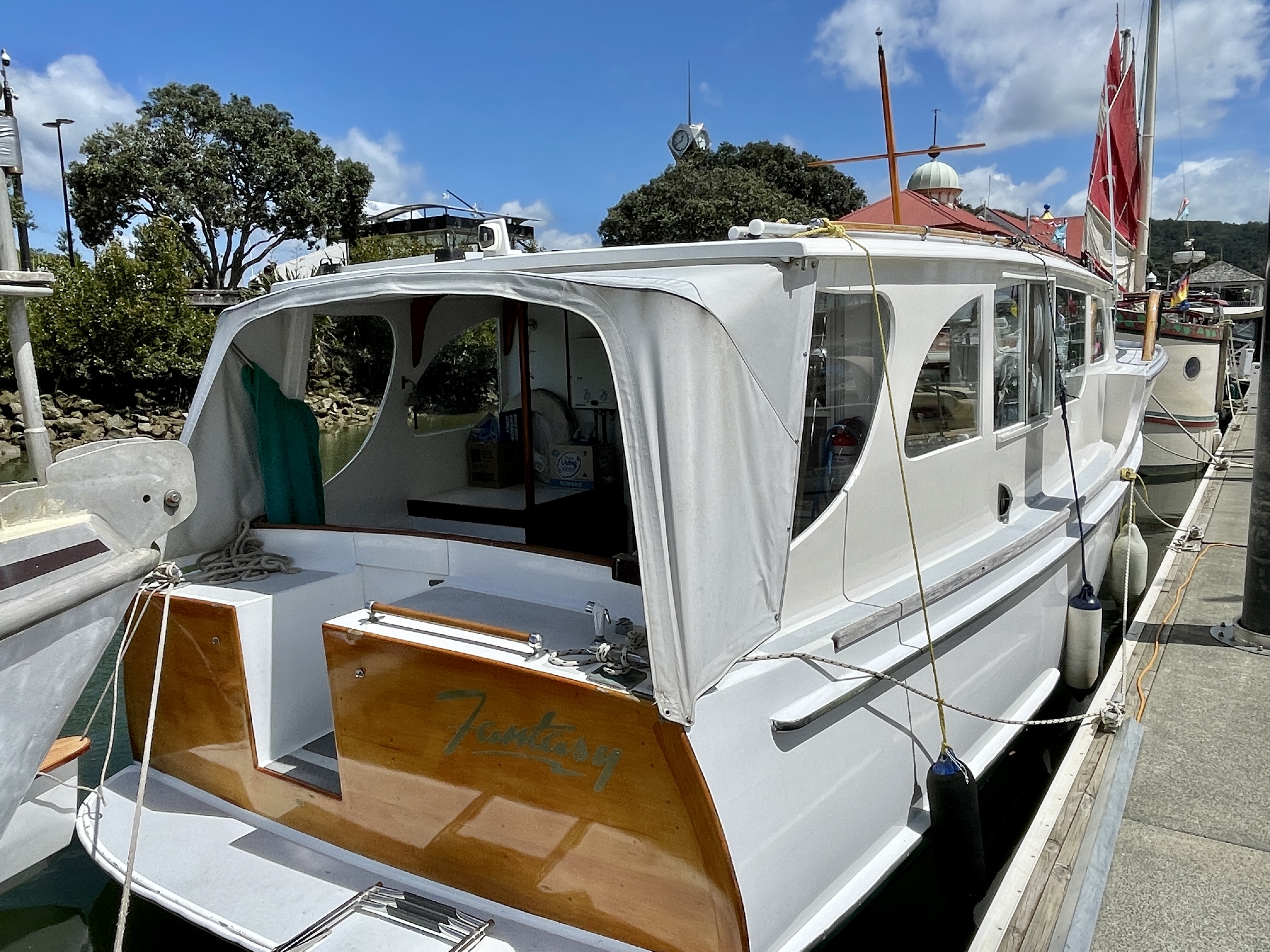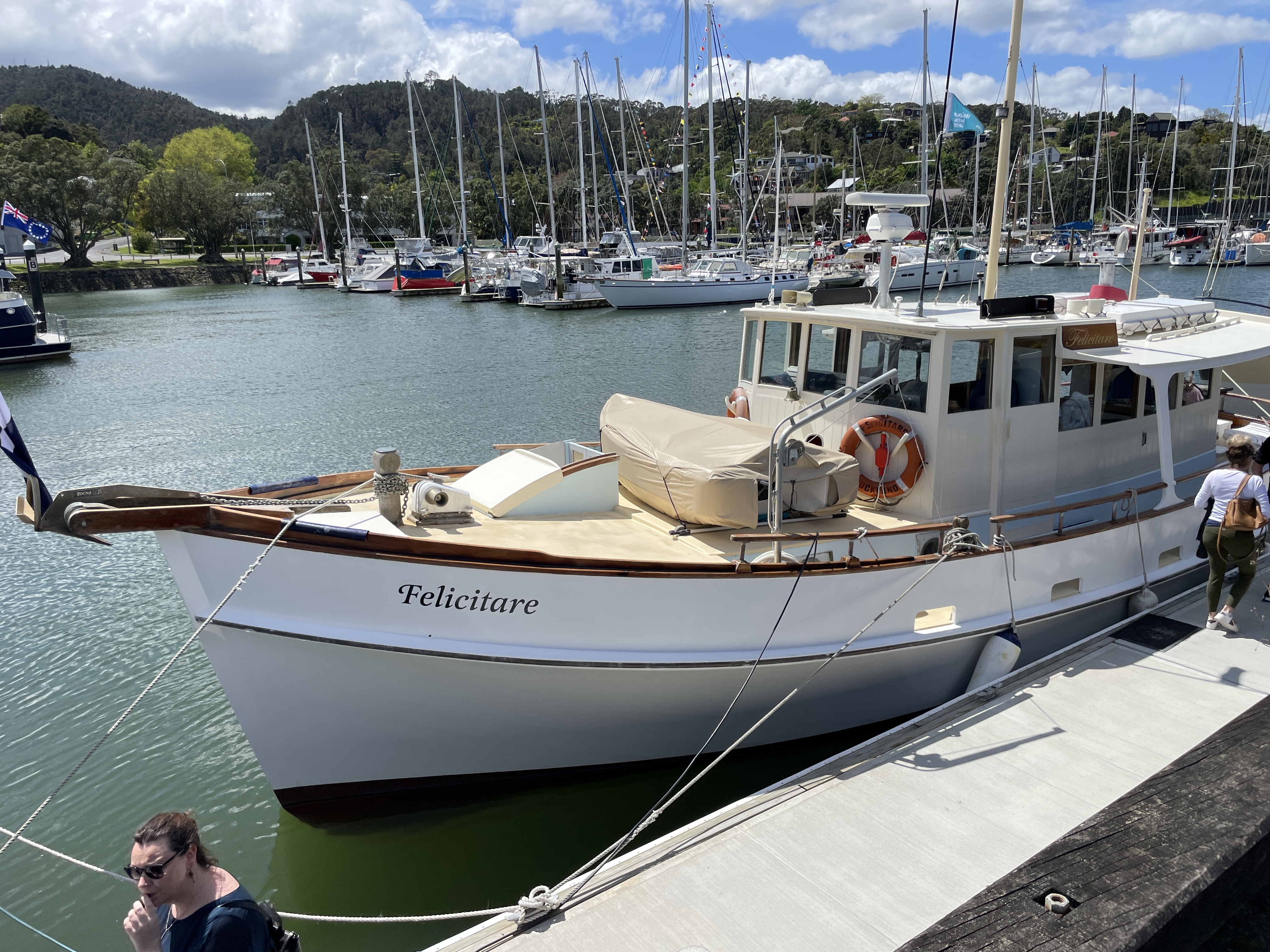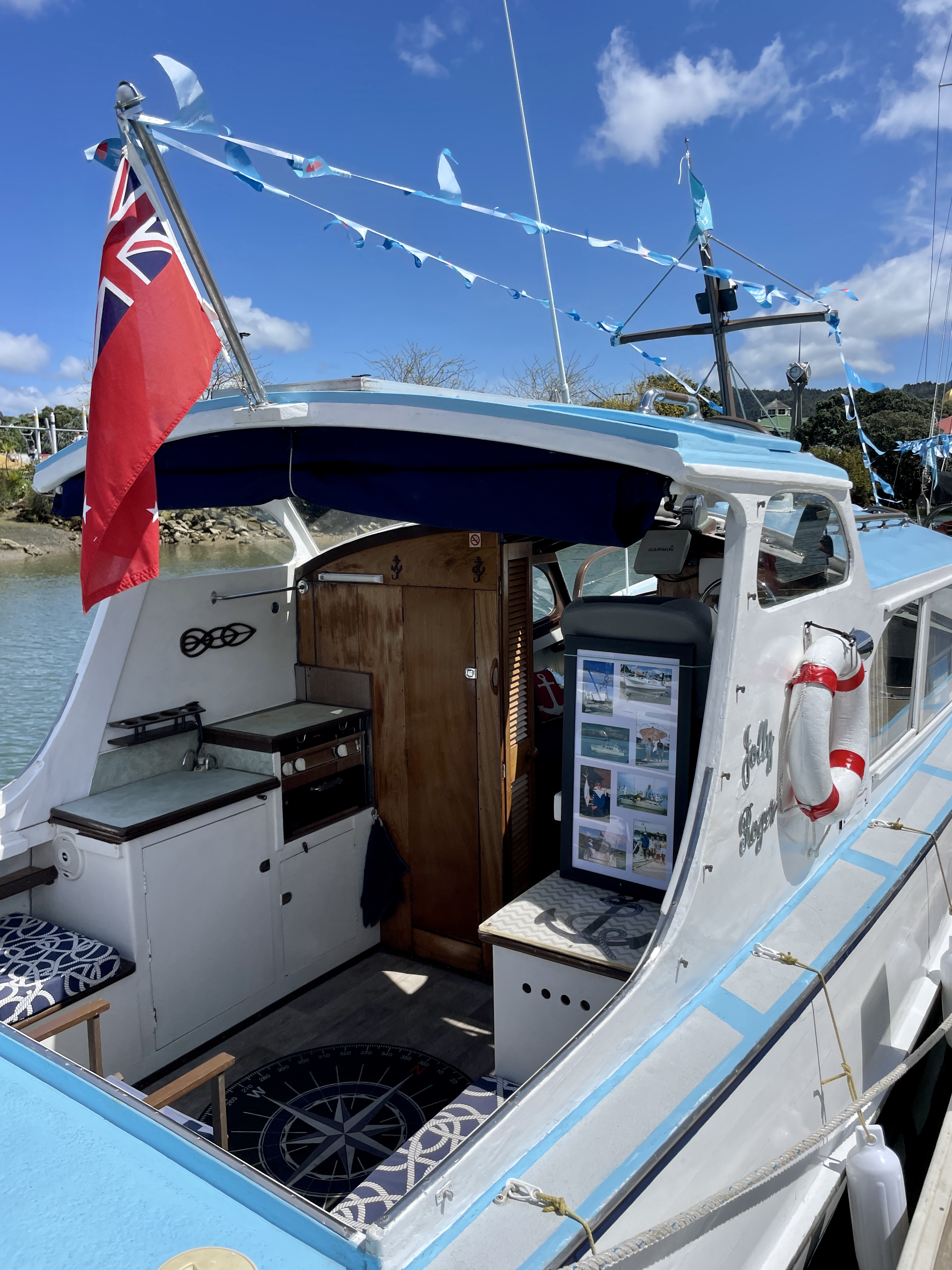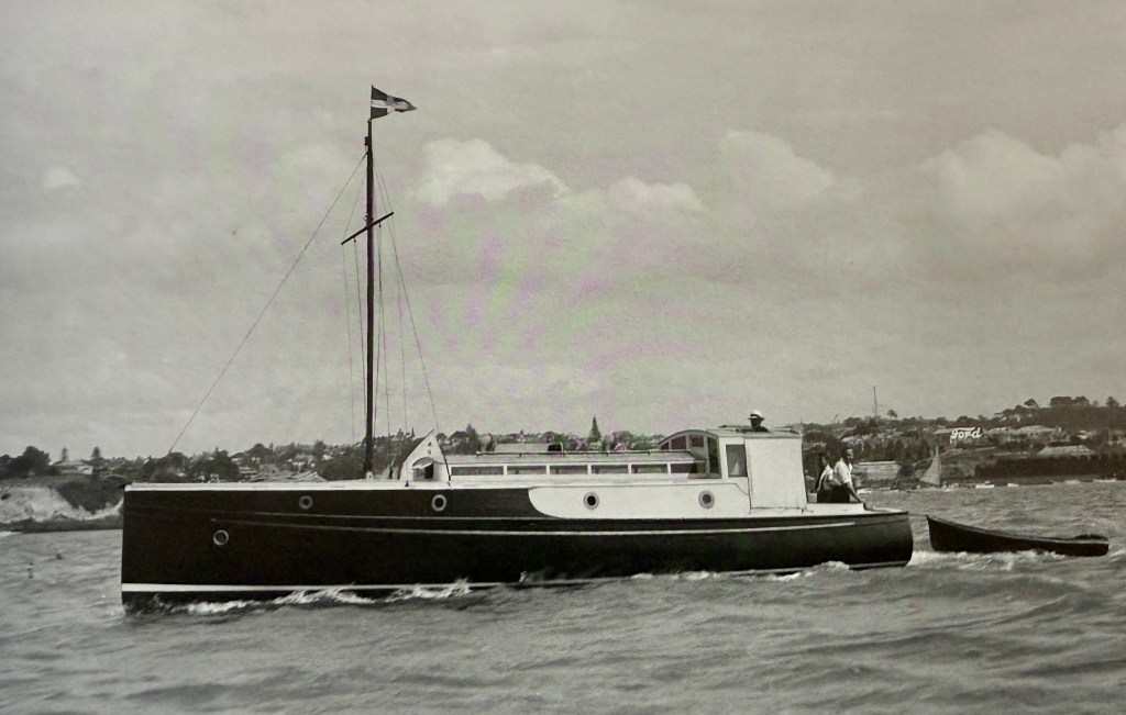 15-10-2025 UPDATE ex owner – Launches name is VALIENT, once called PLAY-BOY, Possibly built by Bailey & Lowe. 32′ in length. Has spent several extend stints as a long-line fishing boat. Once owned by the RSA Fishing Club in Whangarei, they did the name change. In a previous life was moored in the Waitangi river. Currently powered by a Nissan diesel.Has undergone a rolling restoration with lots of structural work, which included over 800 new copper rivets.