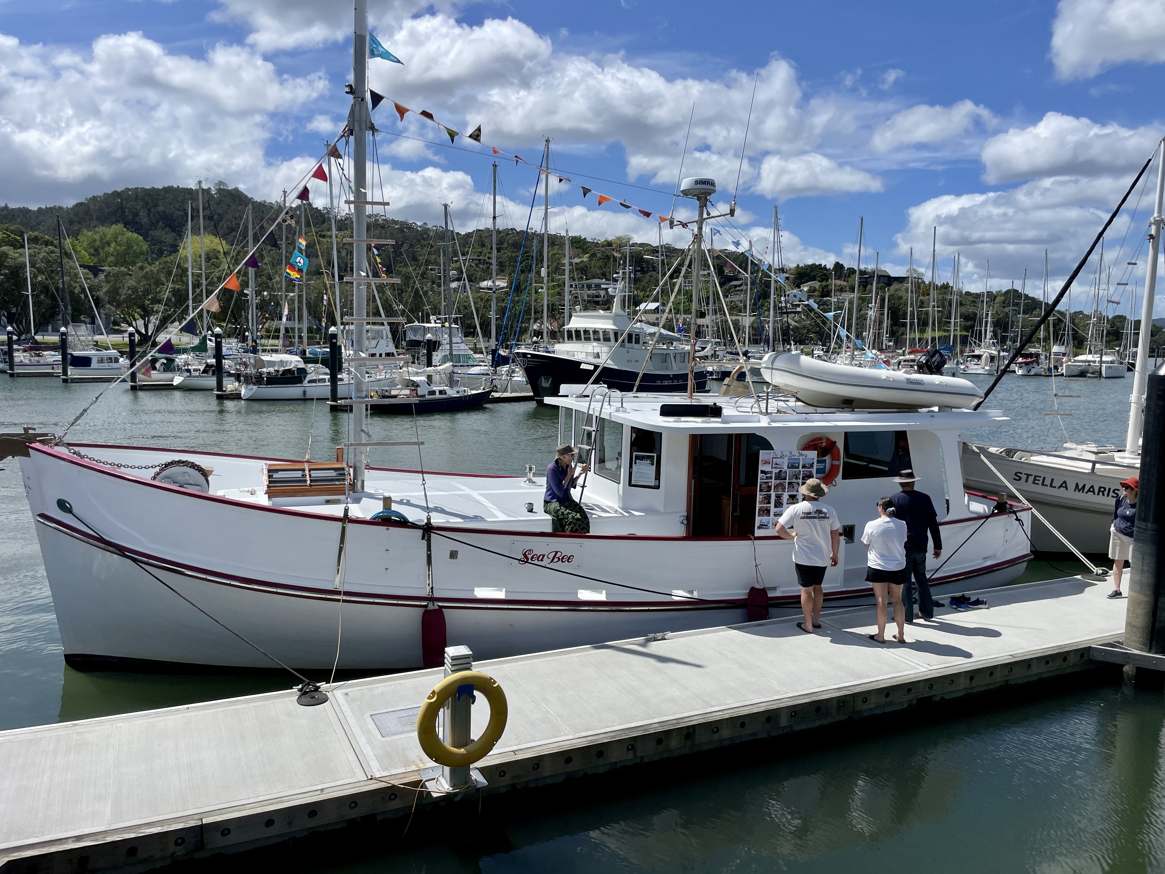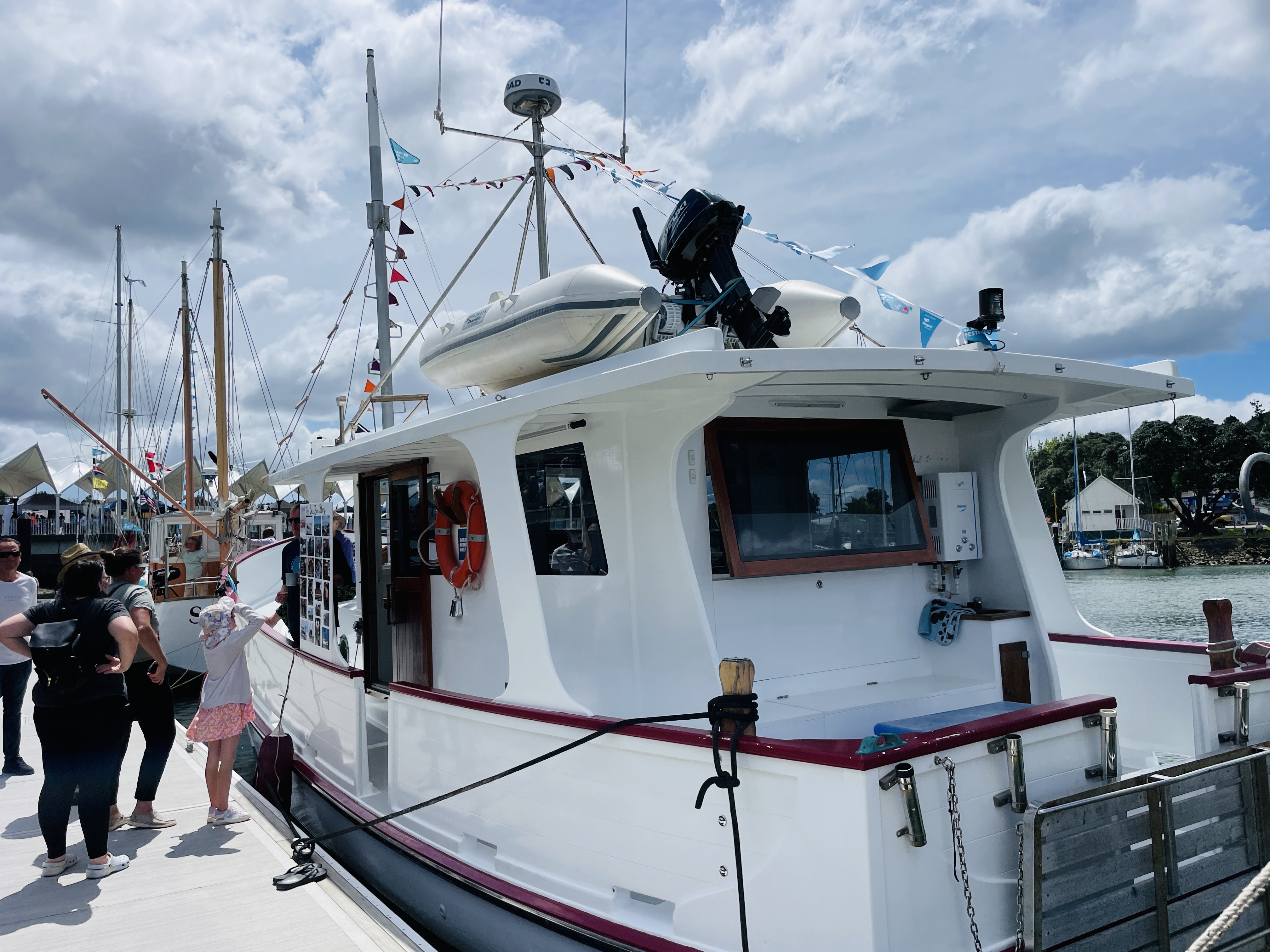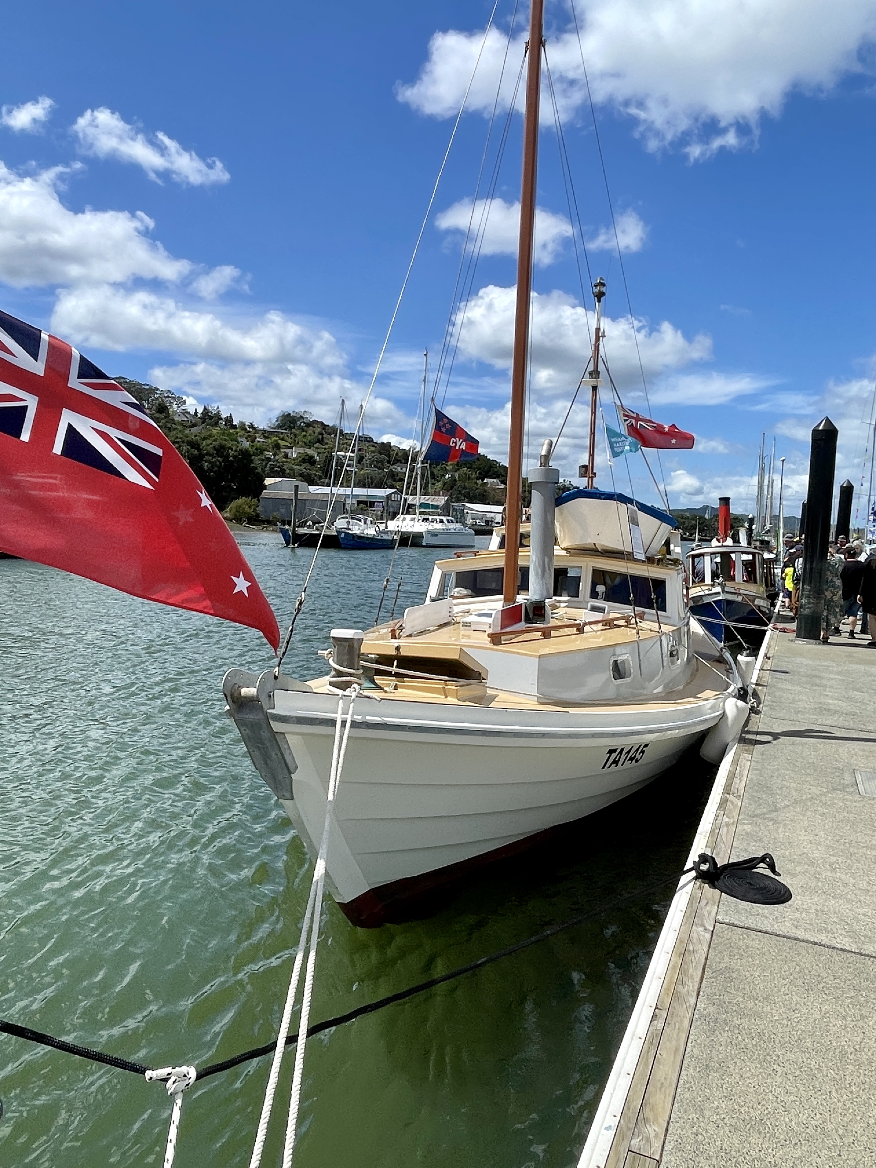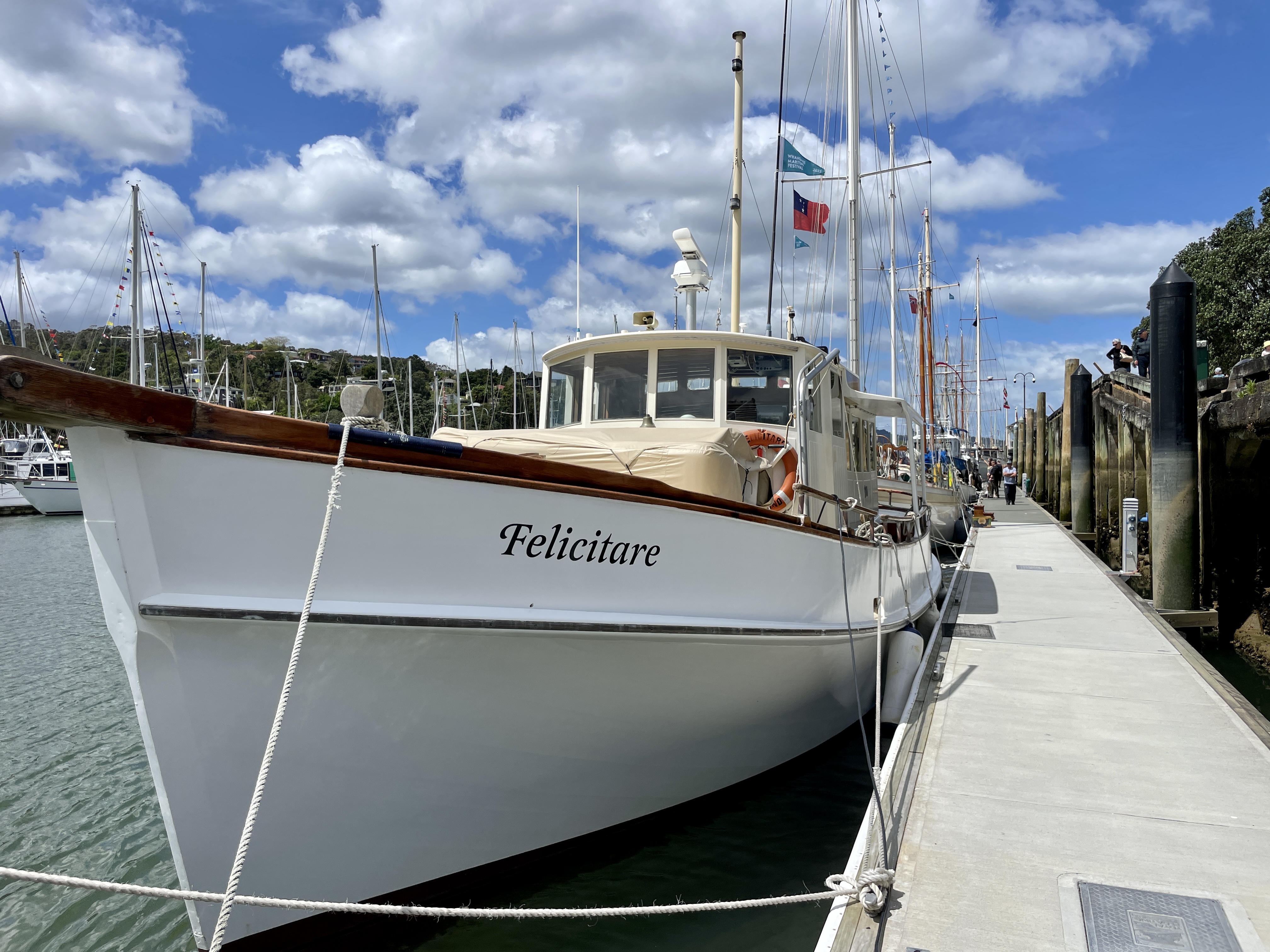 15-10-2025 UPDATE ex owner – Launches name is VALIENT, once called PLAY-BOY, Possibly built by Bailey & Lowe. 32′ in length. Has spent several extend stints as a long-line fishing boat. Once owned by the RSA Fishing Club in Whangarei, they did the name change. In a previous life was moored in the Waitangi river. Currently powered by a Nissan diesel.Has undergone a rolling restoration with lots of structural work, which included over 800 new copper rivets.