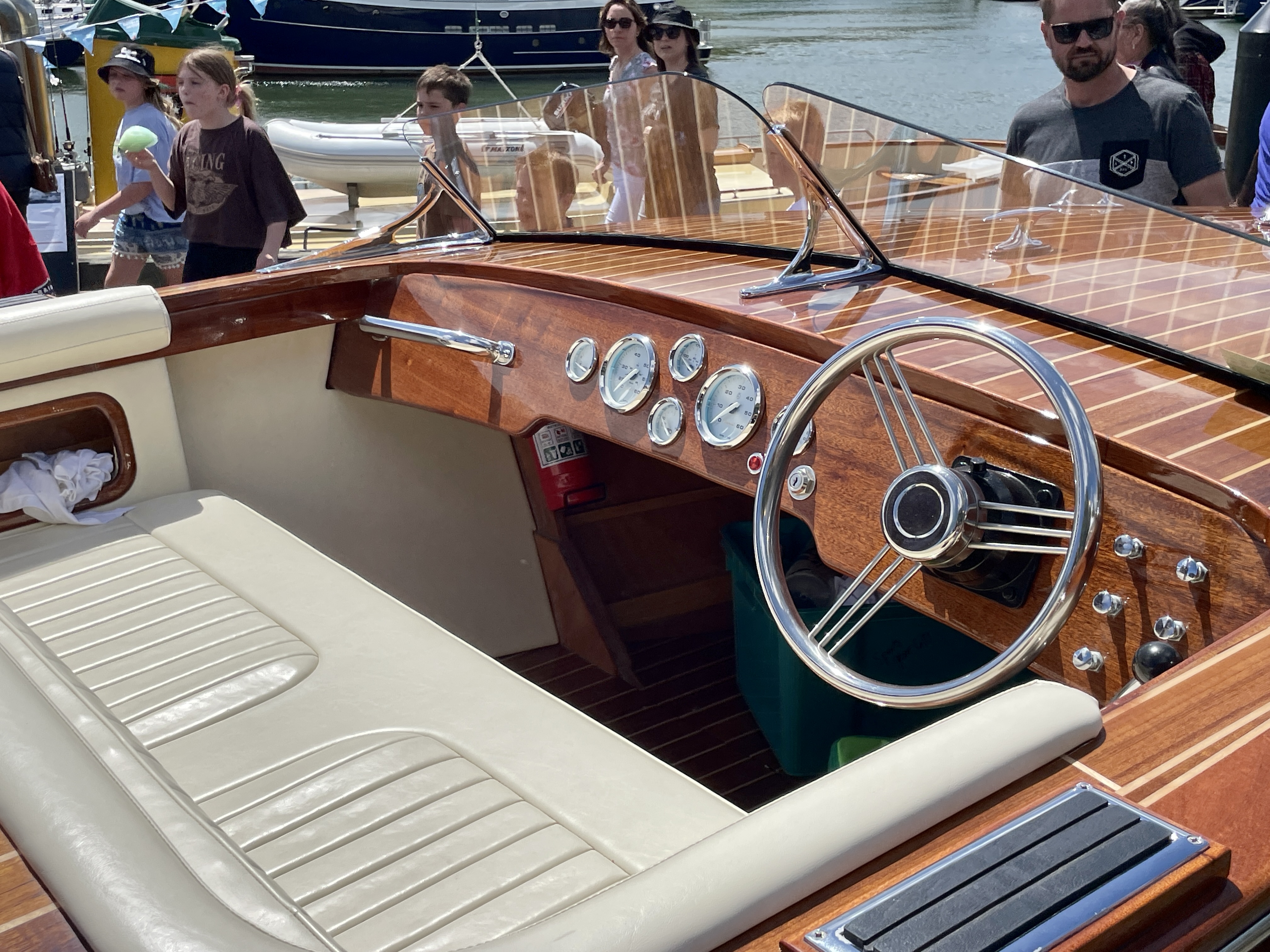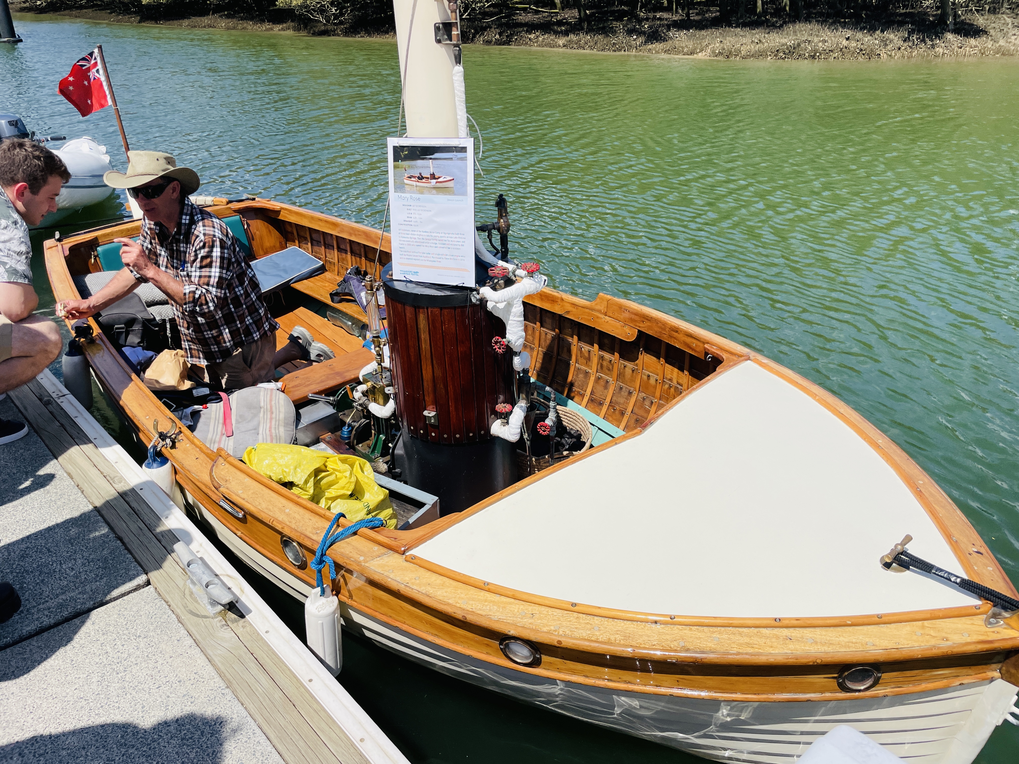 Tucked away among a line-up of serious commercial tonnage was today’s mystery classic wooden launch. She’d clearly had some recent TLC and looked about ready to be splashed again.