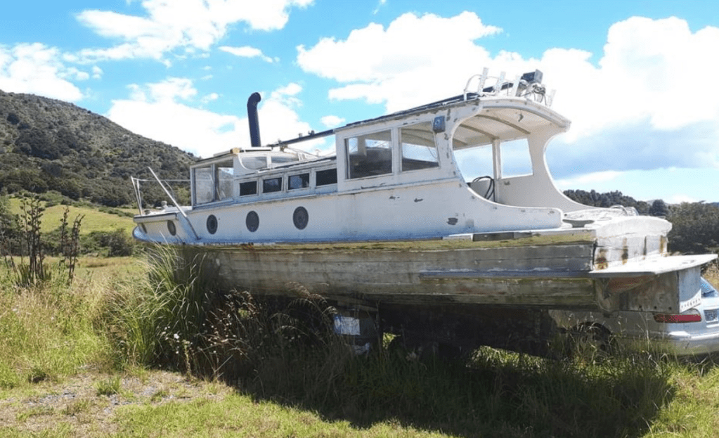 Then in early Jan 2022, Phil Bull posted the colour photo above of Wondabyne, now named Pakatoa, sitting in a Warkworth paddock. Phil commented that she had been there for a longtime and it looked like, sadly this was her final resting place. Under the name Pakatoa, the vessel was used to ferry passengers between Auckland and Pakatoa Island in the Hauraki Gulf.