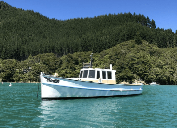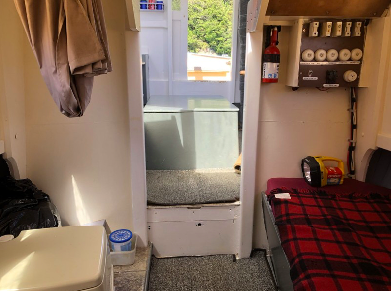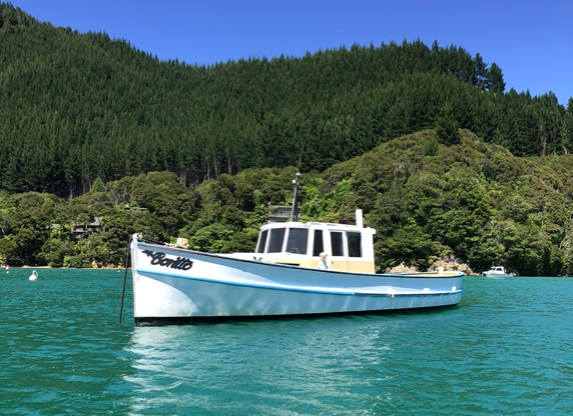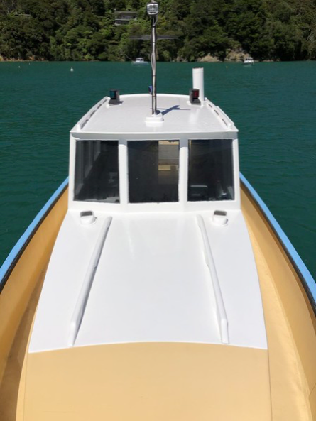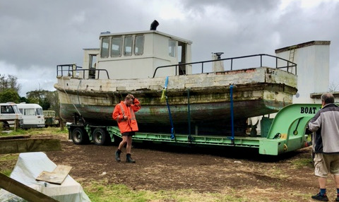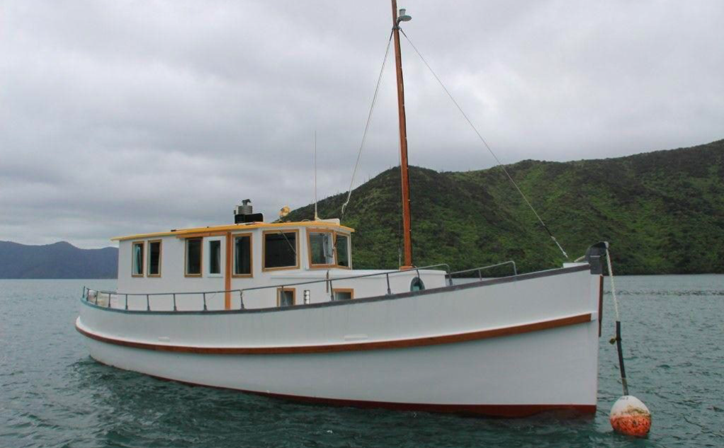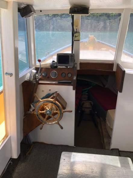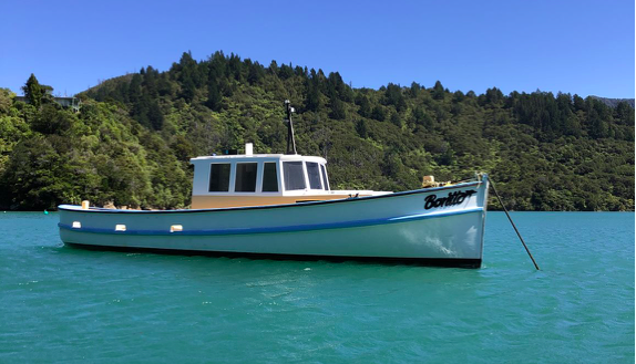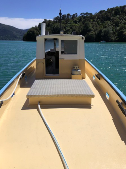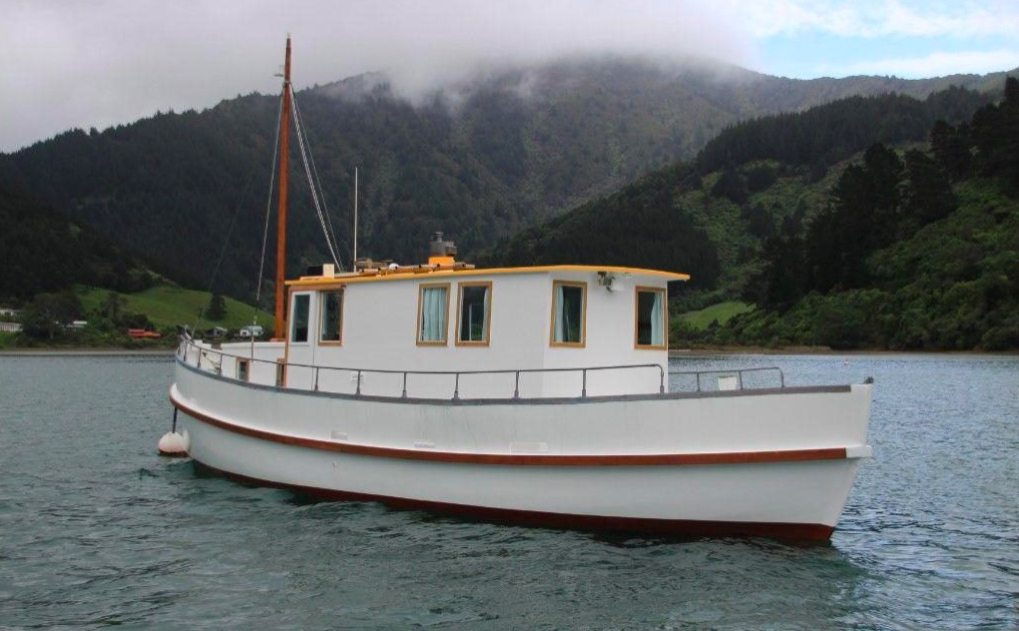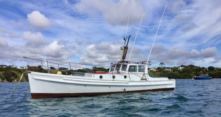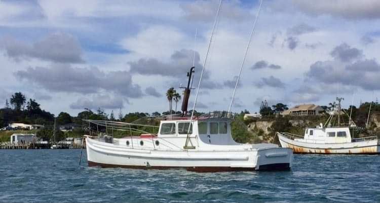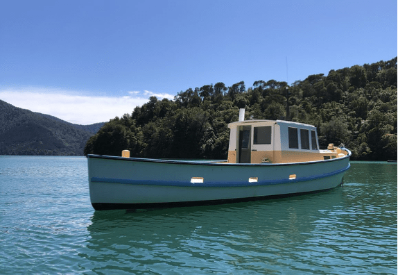 Woody Brett Stanaway has taken his launch Seabee to the Far North this summer, even ventured as far as rounding Cape Reigna. While in Hohora he spotted the above woody. Those rather substantial belting indicate she was / is a workboat. In my eyes, there is a certain whale chaser look to her.No name visible so we will have to rely on the WW workboat boys for help ID’ing her.