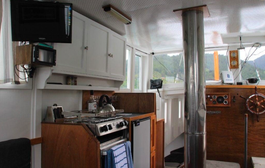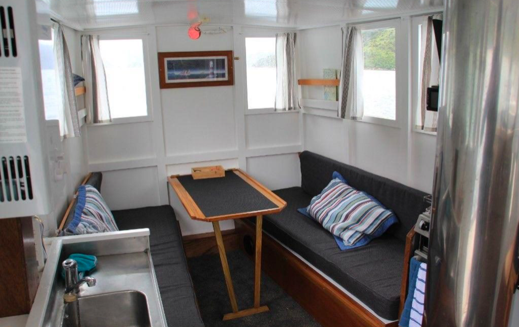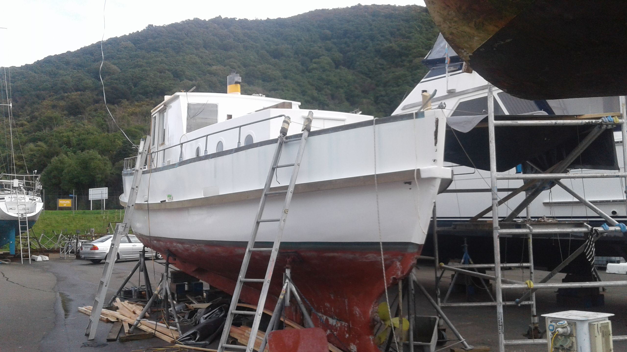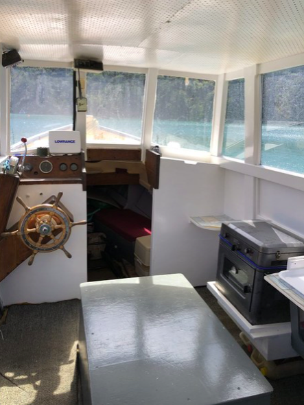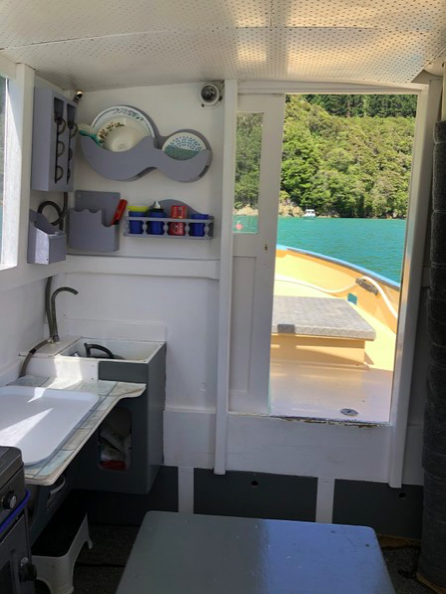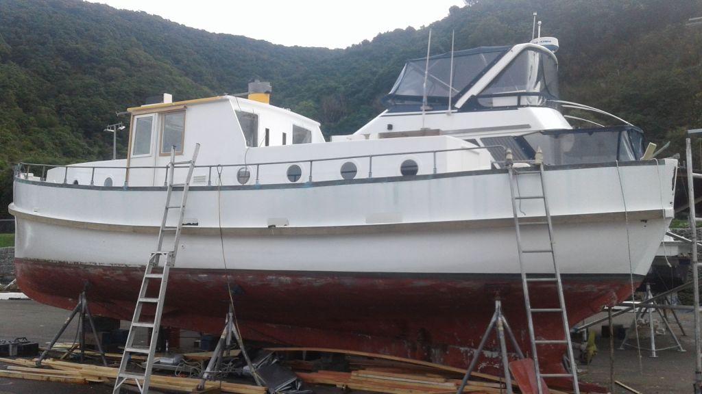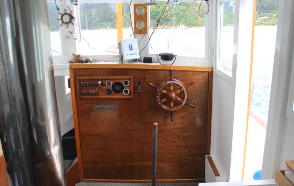Woody Brett Stanaway has taken his launch Seabee to the Far North this summer, even ventured as far as rounding Cape Reigna. While in Hohora he spotted the above woody. Those rather substantial belting indicate she was / is a workboat. In my eyes, there is a certain whale chaser look to her.No name visible so we will have to rely on the WW workboat boys for help ID’ing her.