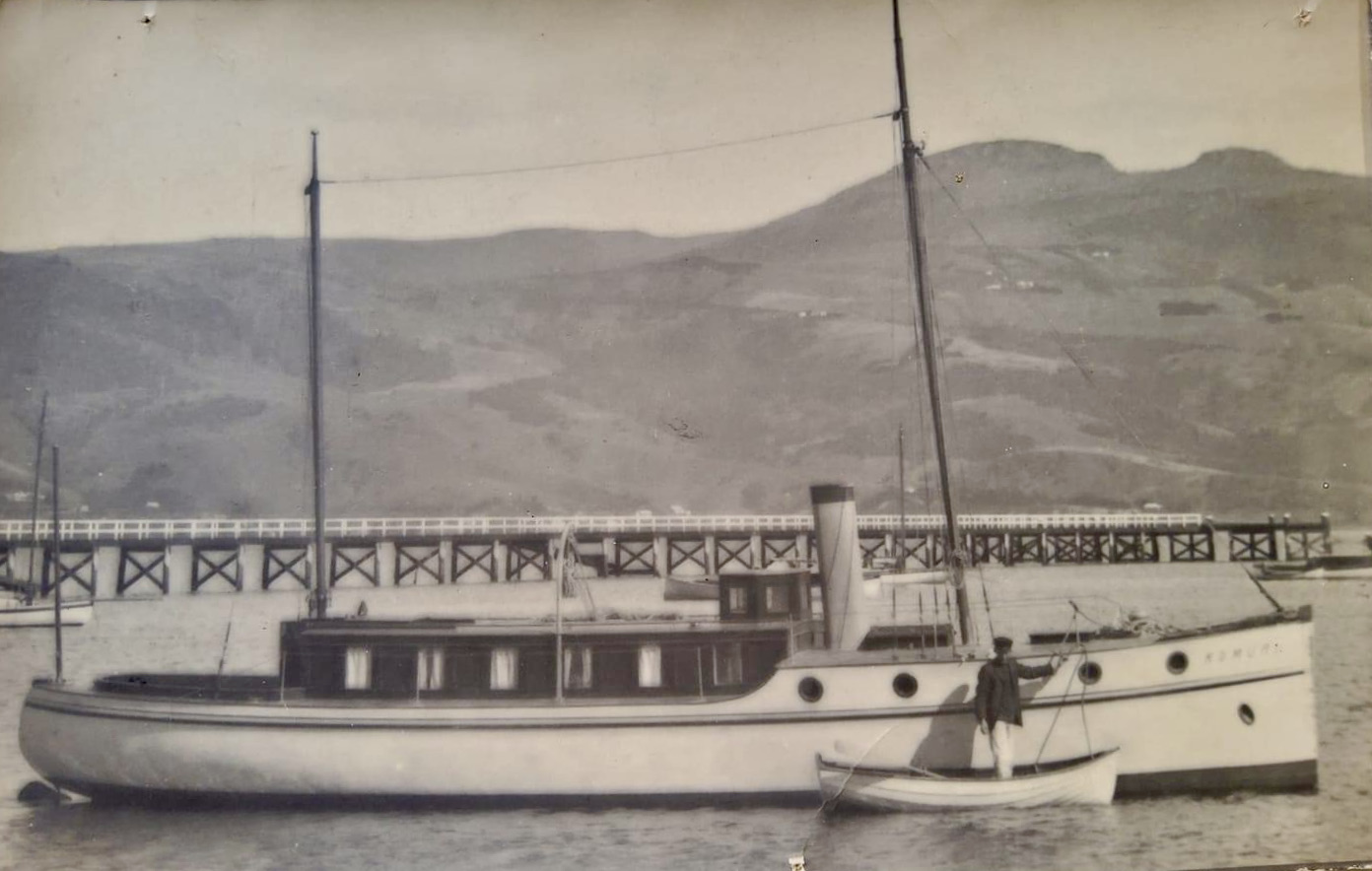Input from Harold Kidd – KOMURI was built in Dunedin in 1913 by Austen Jenkinson to a design by McRae for James Johnston. She had a 2 cylinder Bolinder semi-diesel crude oil engine. She was sold in 1916 to the lessees of Campbell Island for whaling. On the trip down she had an engine breakdown and was abandoned at sea, the crew took to the surfboat. Long story. (thanks Nathan Hebert for the advising the correct spelling)