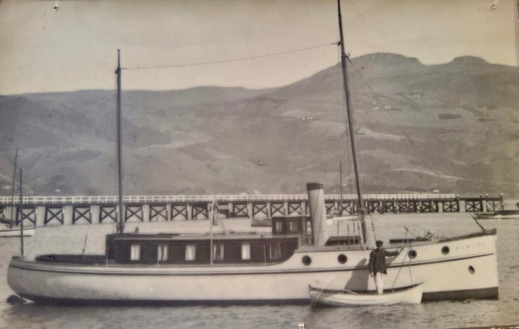 Today’s photo comes to us from Heather England’s fb and shows a very smart looking steamer. The photo was originally sent to Heather’s grandmother in 1912 when she was 12., and has a Dunedin post mark stamped on the rear, so the possible location surprise surprise is Dunedin. The photo is tagged Komuri on the back, which is the maori word for ‘fine weather’ which kind of sounds like a good name for a boat.