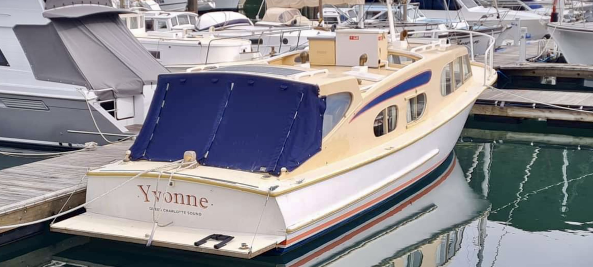Bob Swanson built her at Blackwood Bay, Queen Charlotte Sound, for Jack Thompson, a farmer out Ward way, who kept her for many years – could be she’s only had 2 owners? Jack named after his wife, Yvonne, a very gracious lady.